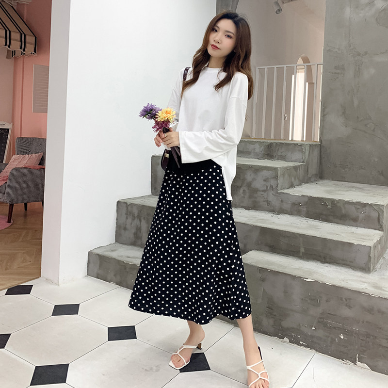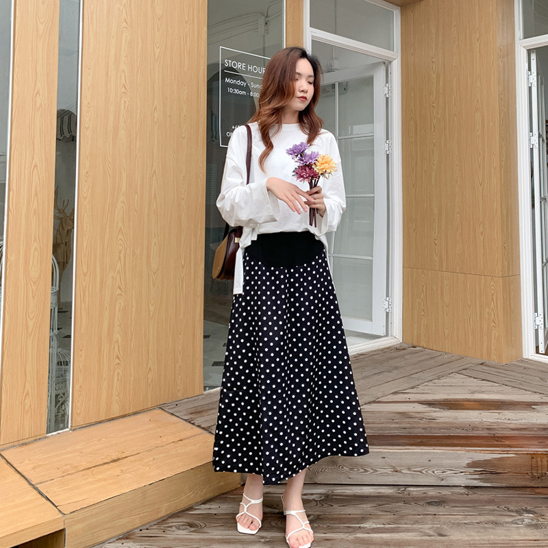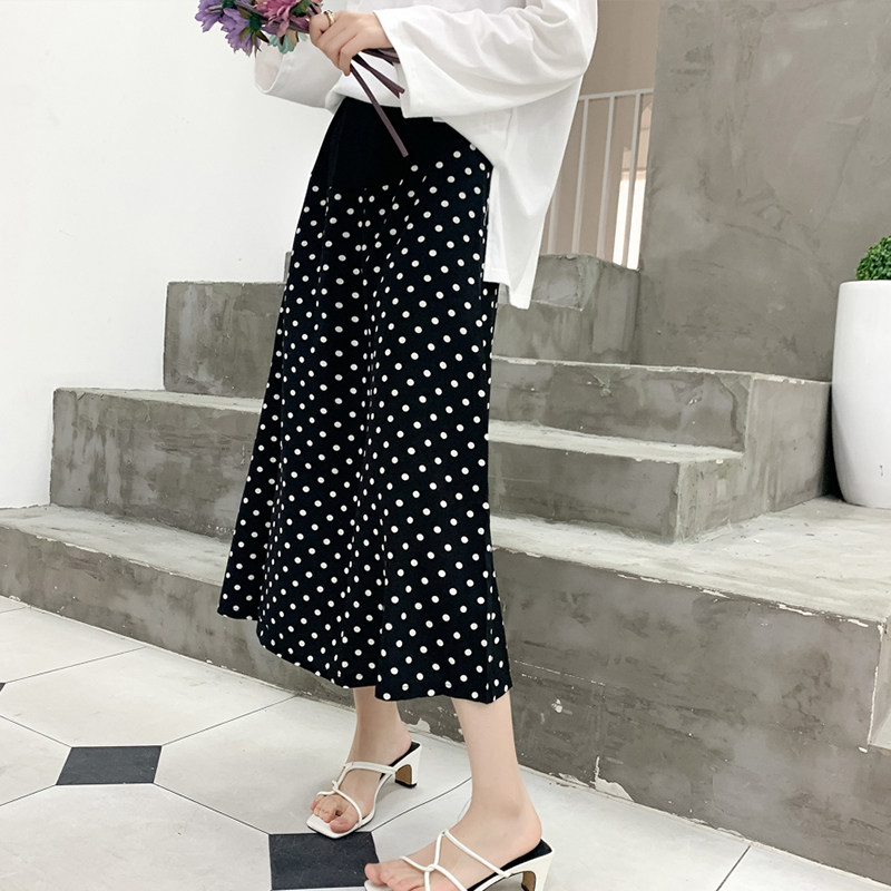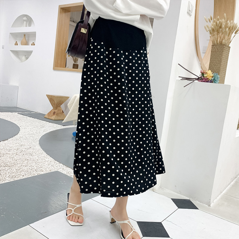婧麒孕妇半身裙黑色波点裙孕期漂亮裙子宽松不显孕肚孕妈休闲上班