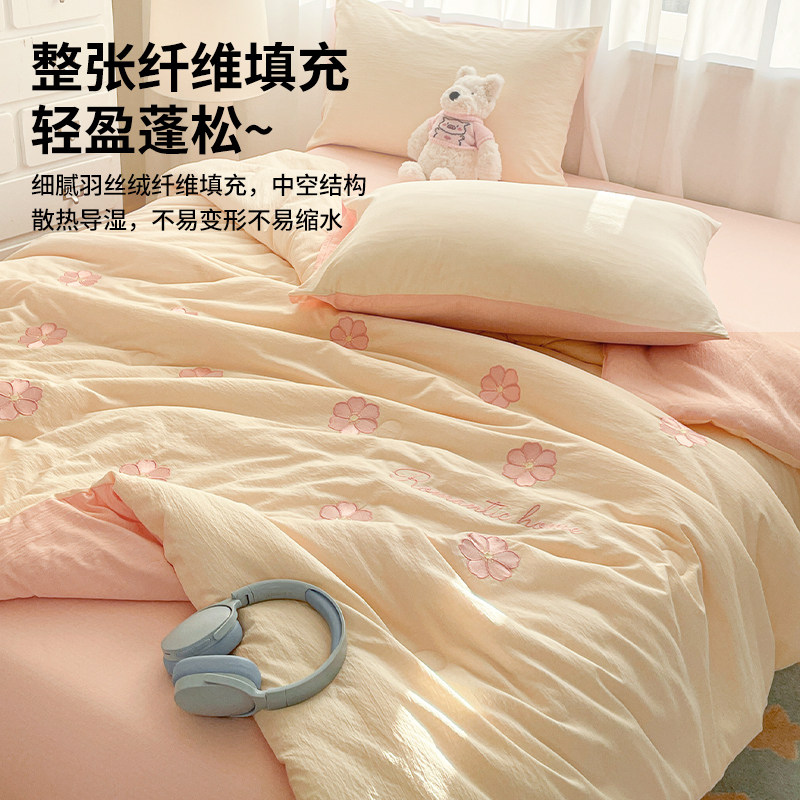 A类全棉双层纱夏凉被四件套空调被可机洗薄款被子夏季夏被三件套4
