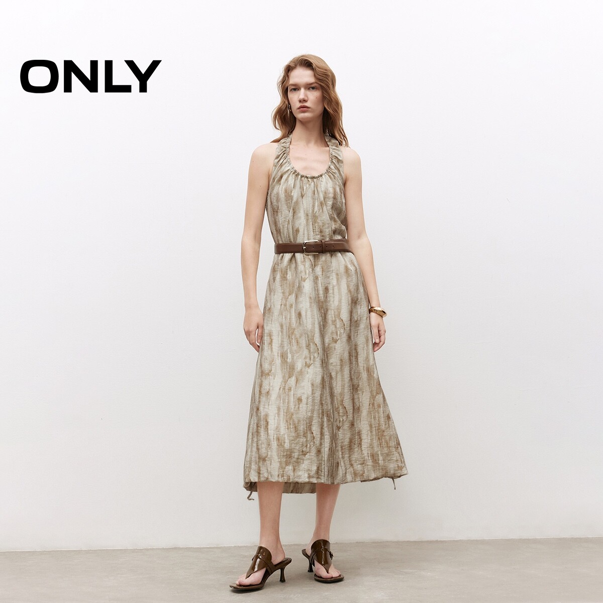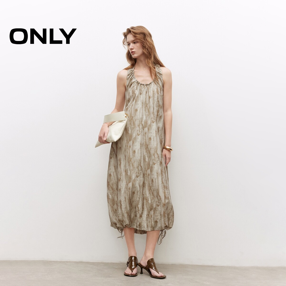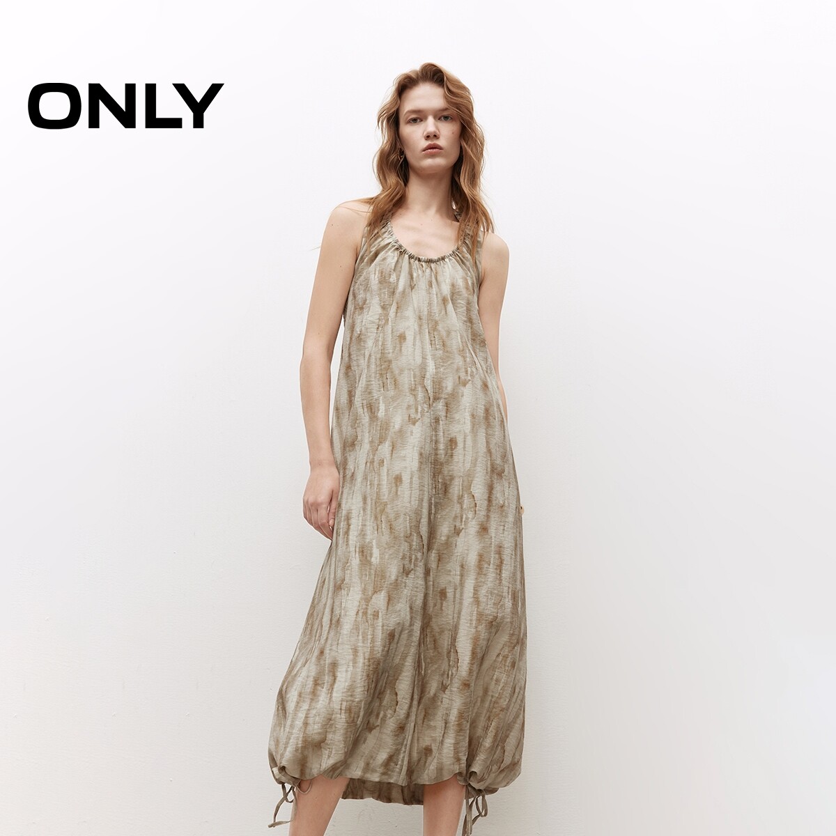 【ONLY奥莱】春季性感露背挂脖系带无袖U领印花宽松长裙连衣裙女