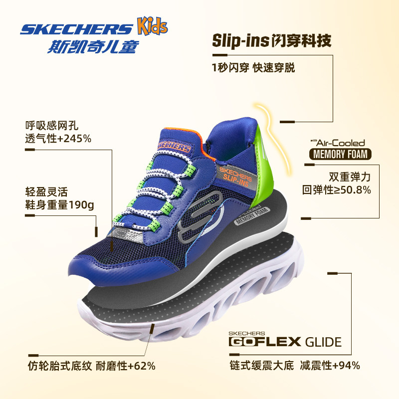 云感闪穿鞋|斯凯奇儿童一脚蹬童鞋春夏透气减震青少年跑步运动鞋