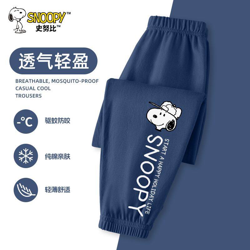 史努比男童防蚊裤夏季2025新款男大童薄款长裤儿童装纯棉透气裤子