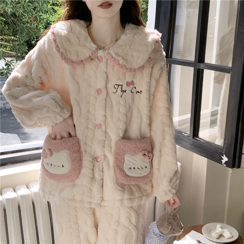 珊瑚绒睡衣女秋冬加绒加厚套装2025新款女士法兰绒保暖家居服外出