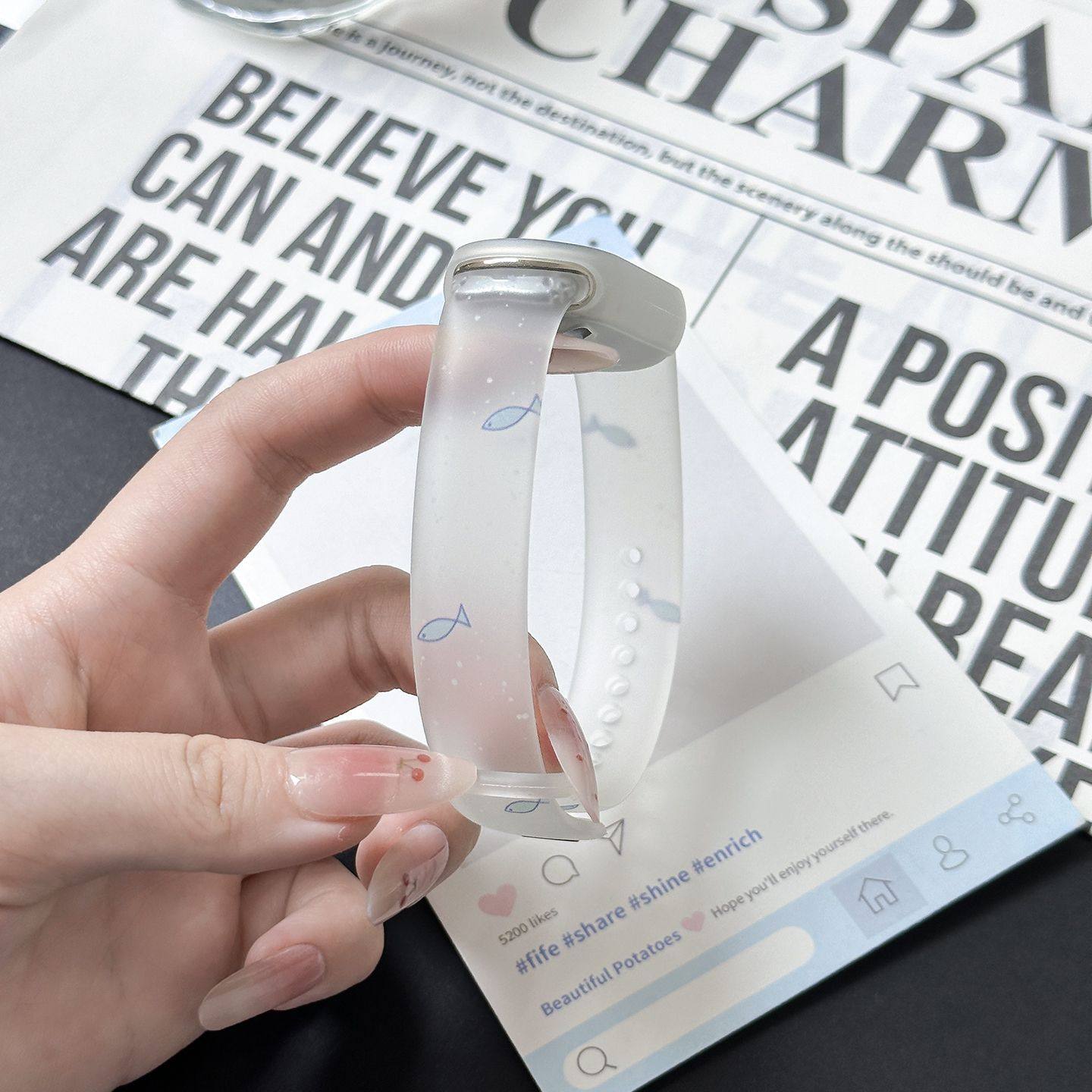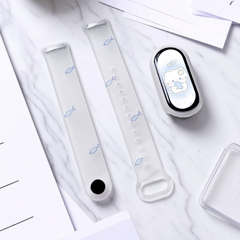适用小米手环10/9表带8代个性印花第九代女款创意硅胶可爱百搭原创半透明蓝色小鱼智能运动腕带