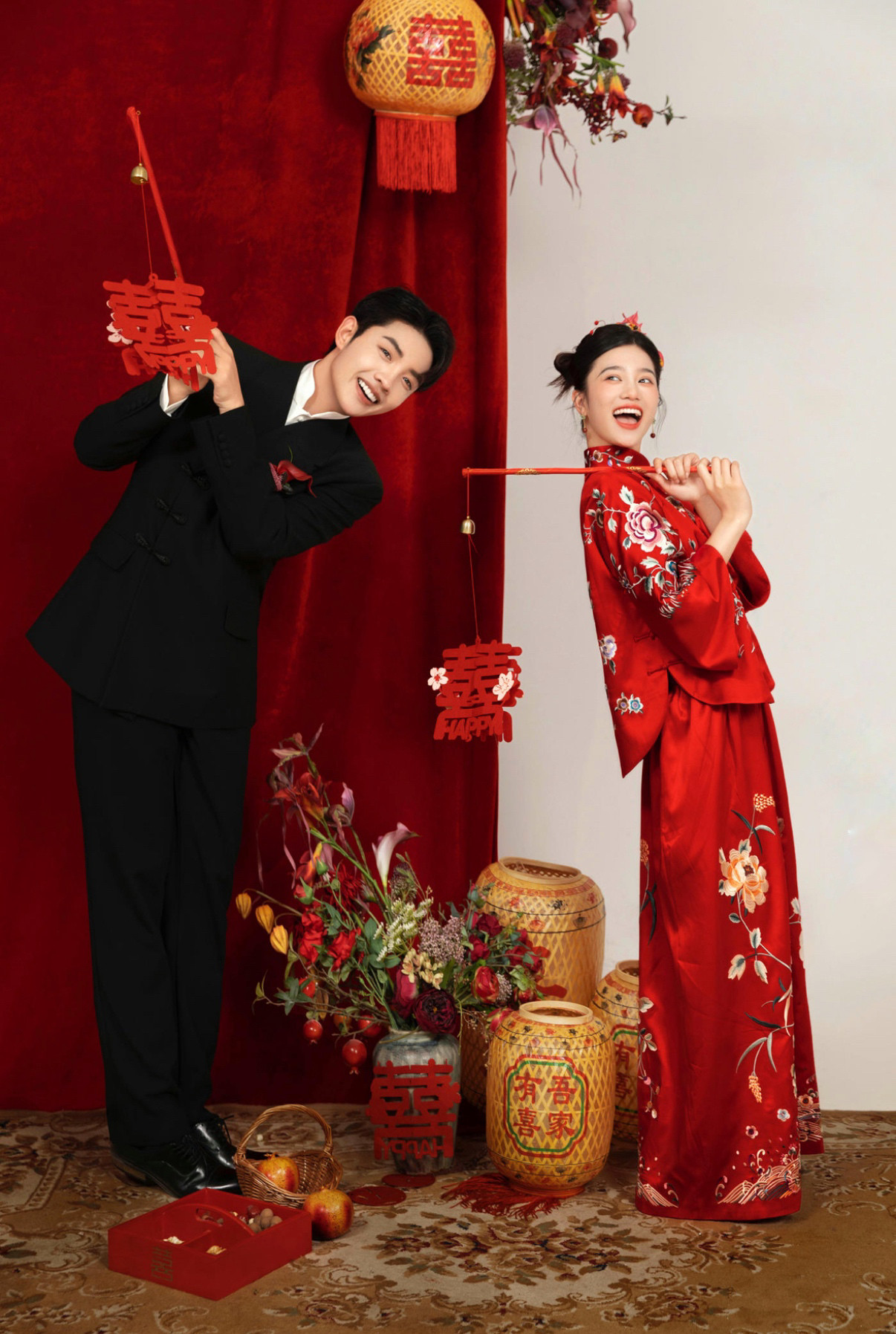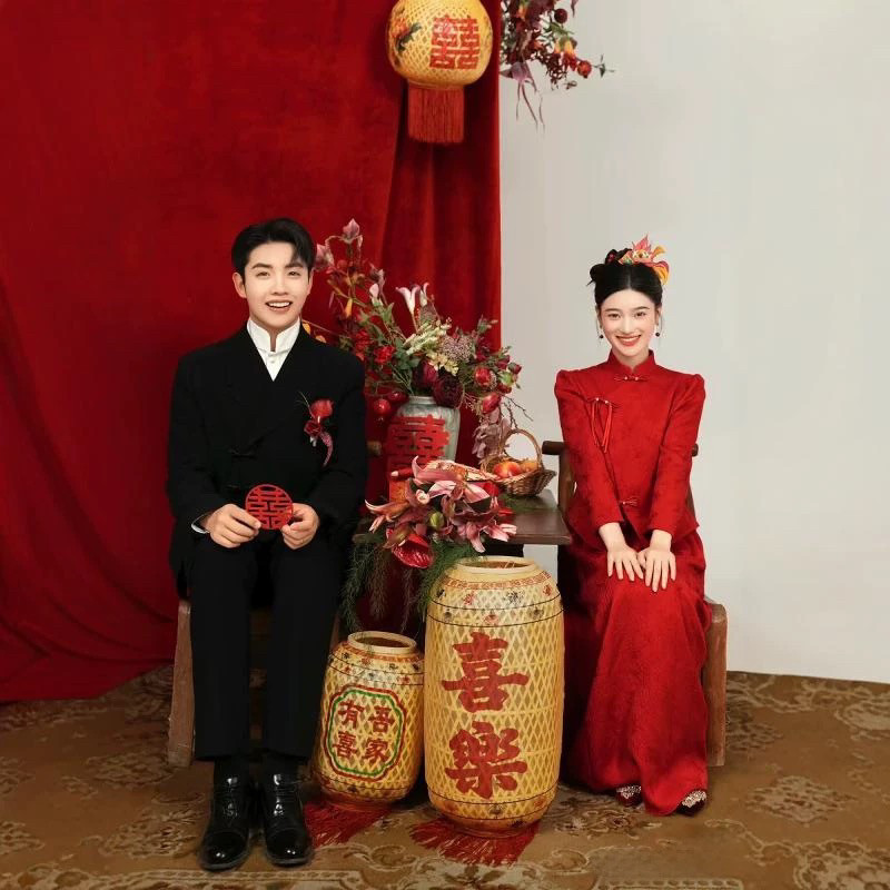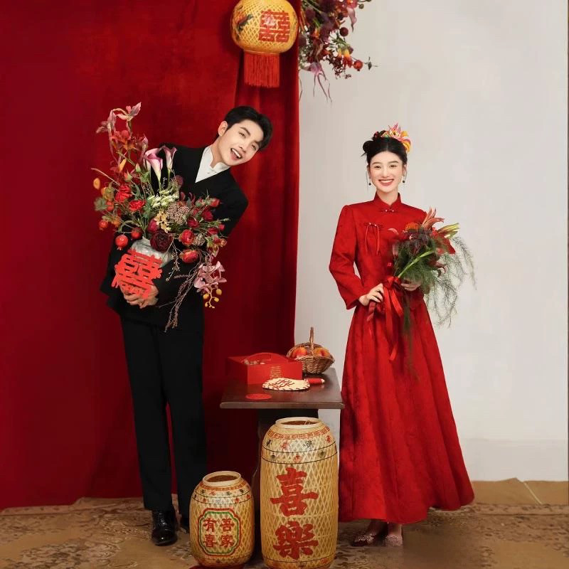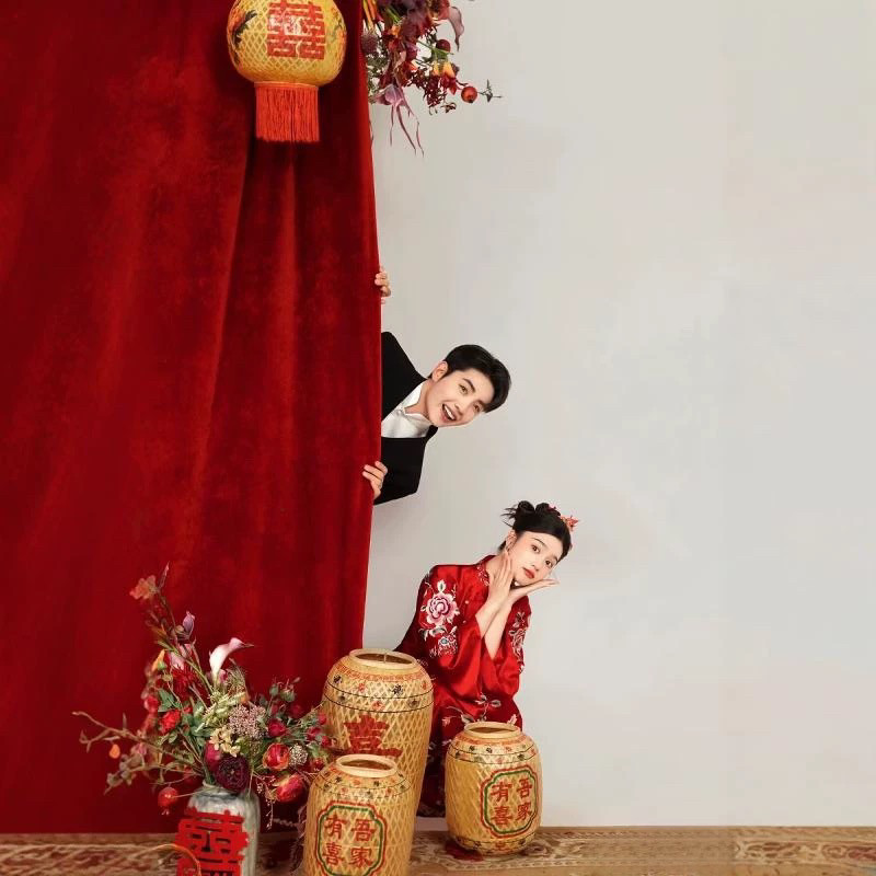 中式古风汉服婚纱摄影道具秀禾拍照场景布置背景布仿真花摆件灯笼