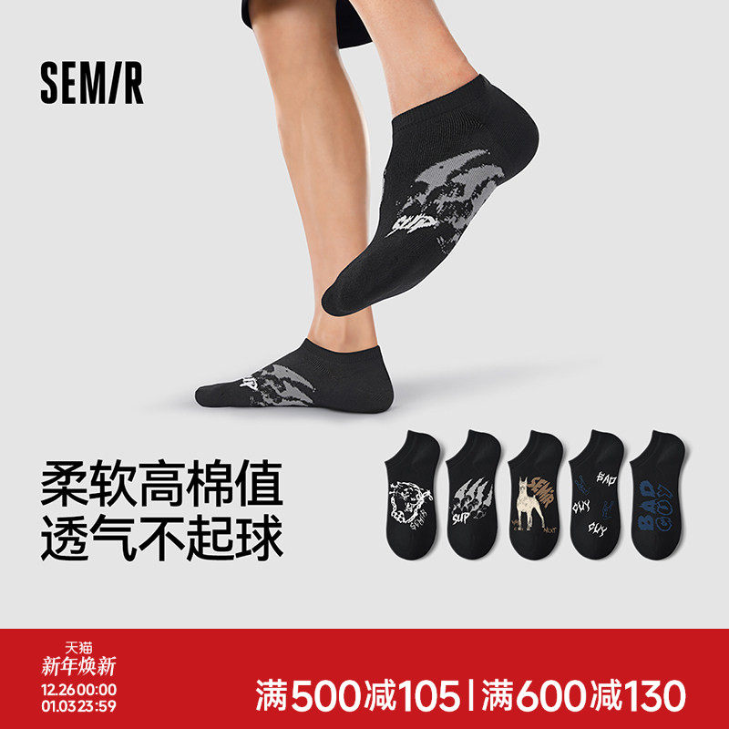 森马袜子男士船袜薄款短袜浅口隐形低帮无骨透气男生棉袜黑色组合