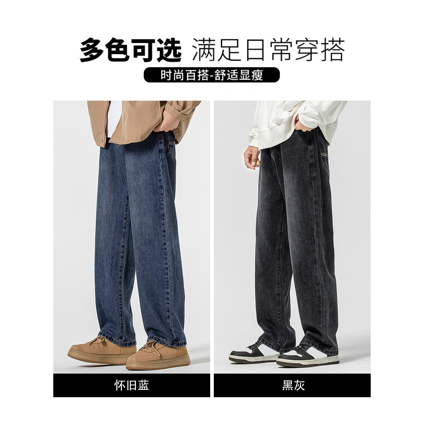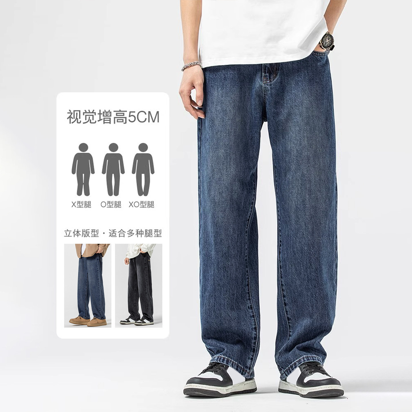 森柔牛仔森马牛仔裤男裤子新款中蓝潮宽松直筒裤子男复古百搭猫须