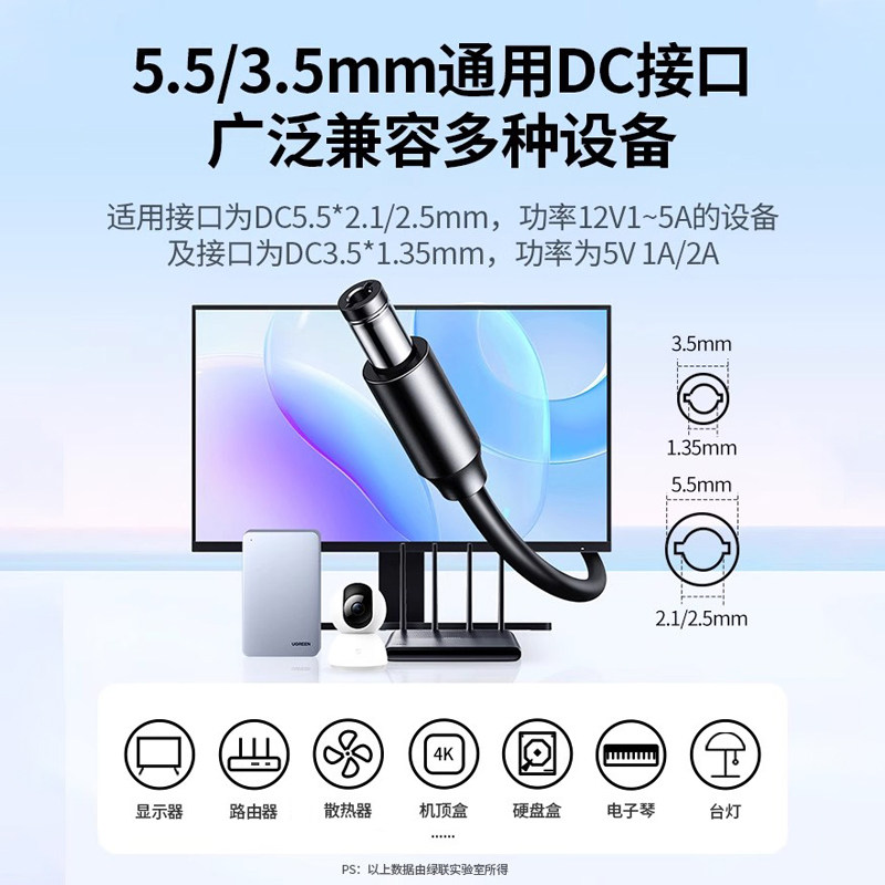 绿联12V/5VDC电源适配器2A3A1A线室内光猫监视电脑显示屏LED台灯电子琴音响摄像头机顶盒移动硬盘路由器充电