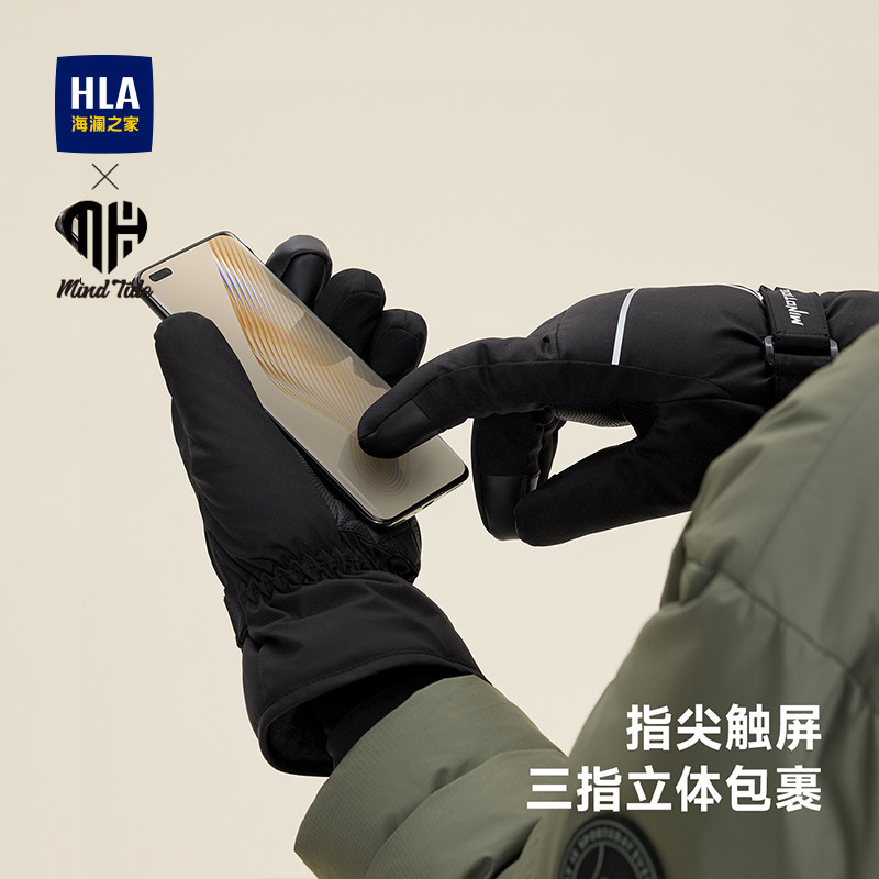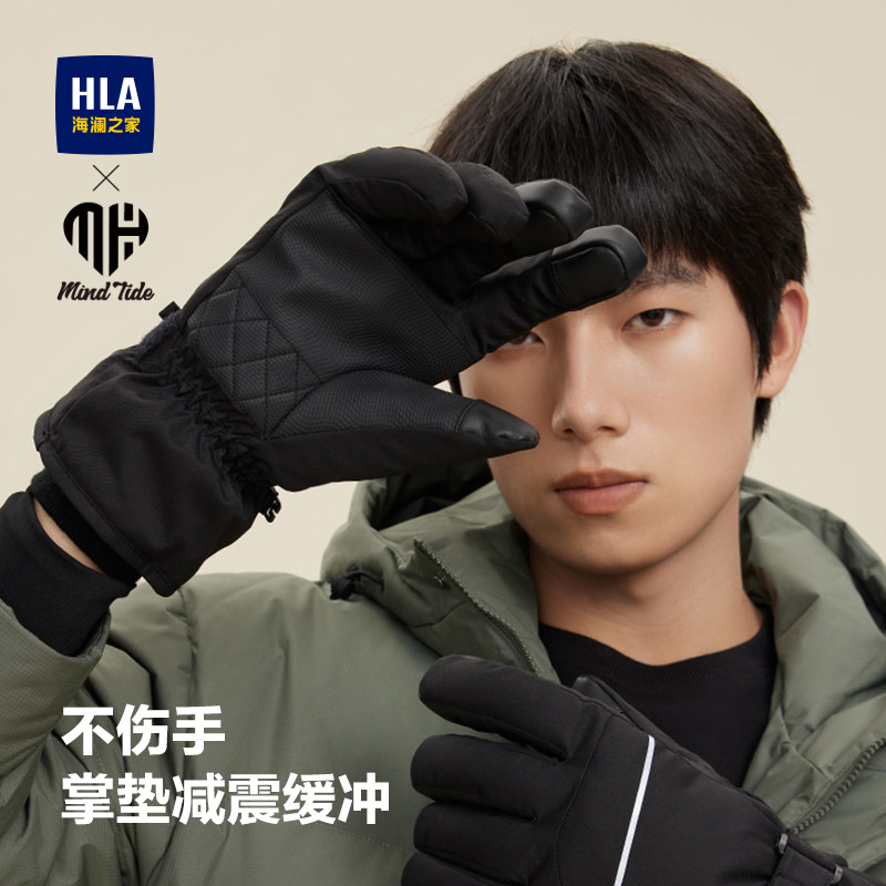 海澜之家滑雪手套男士2025新款秋冬保暖骑行防寒防滑防风出游装备