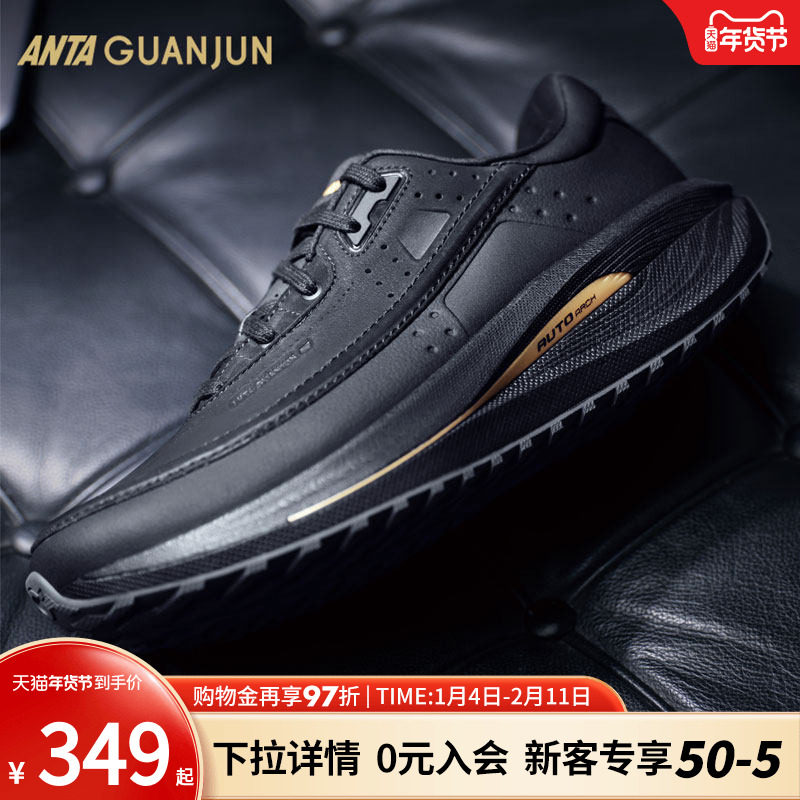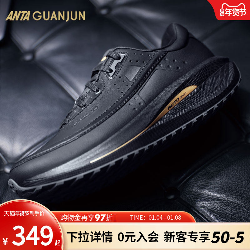 安踏男鞋运动鞋男款冬季新款官方旗舰正品黑色皮面男士跑步鞋子男