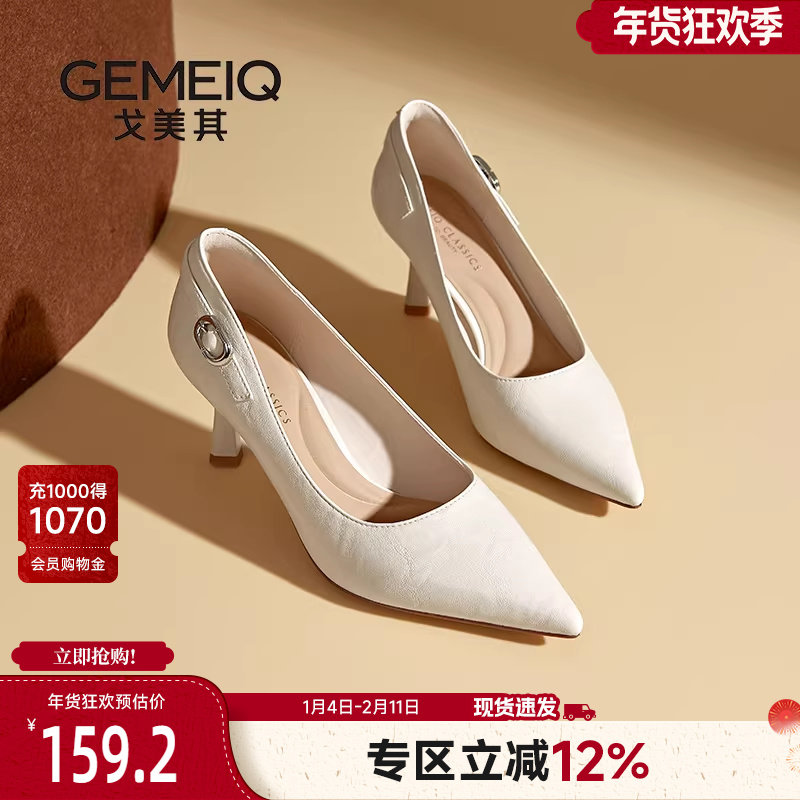 戈美其商场同款白色绝美尖头高跟鞋女细跟2025年新款法式浅口单鞋