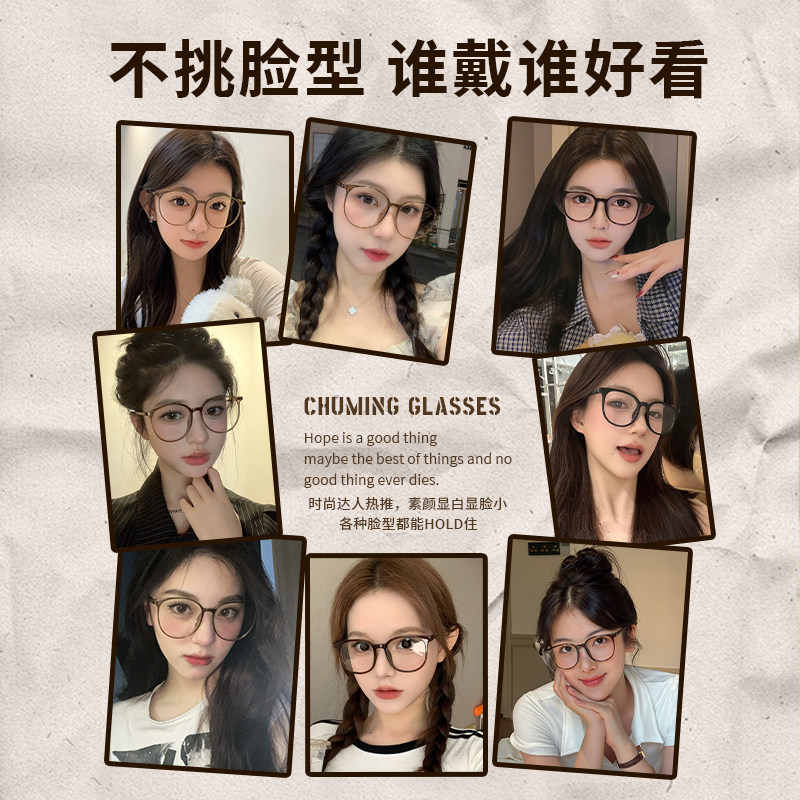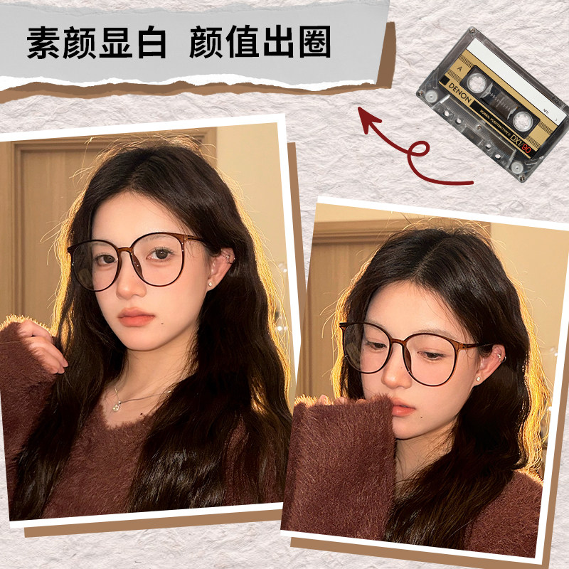 初明茶色显白大框眼镜女近视可配度数防蓝光素颜神器显脸小眼睛架