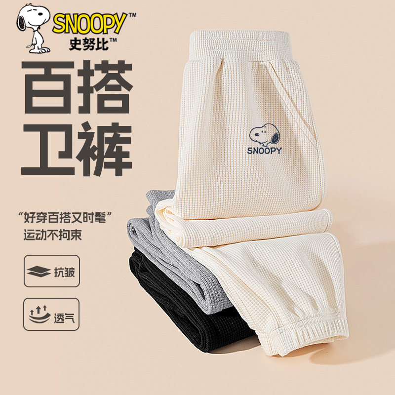 史努比儿童裤子女童华夫格卫裤2025新款春装长裤男童运动裤春秋款