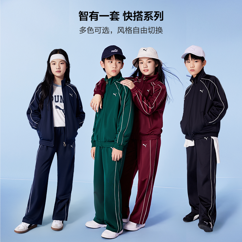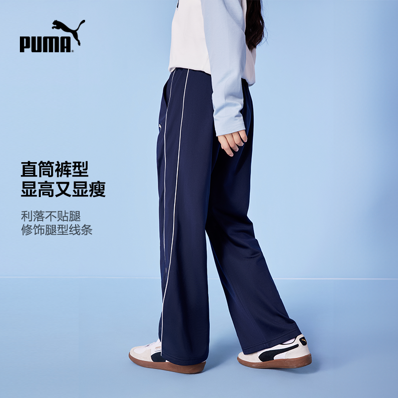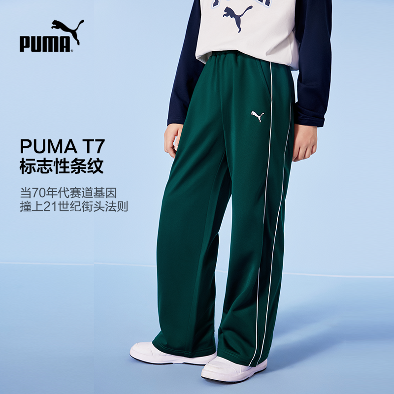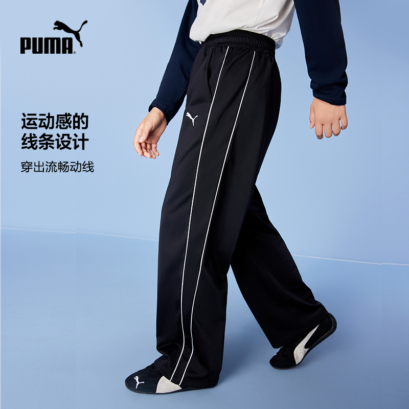 PUMA彪马童装新款儿童休闲裤子薄款时尚运动长裤T7线条设计直筒裤