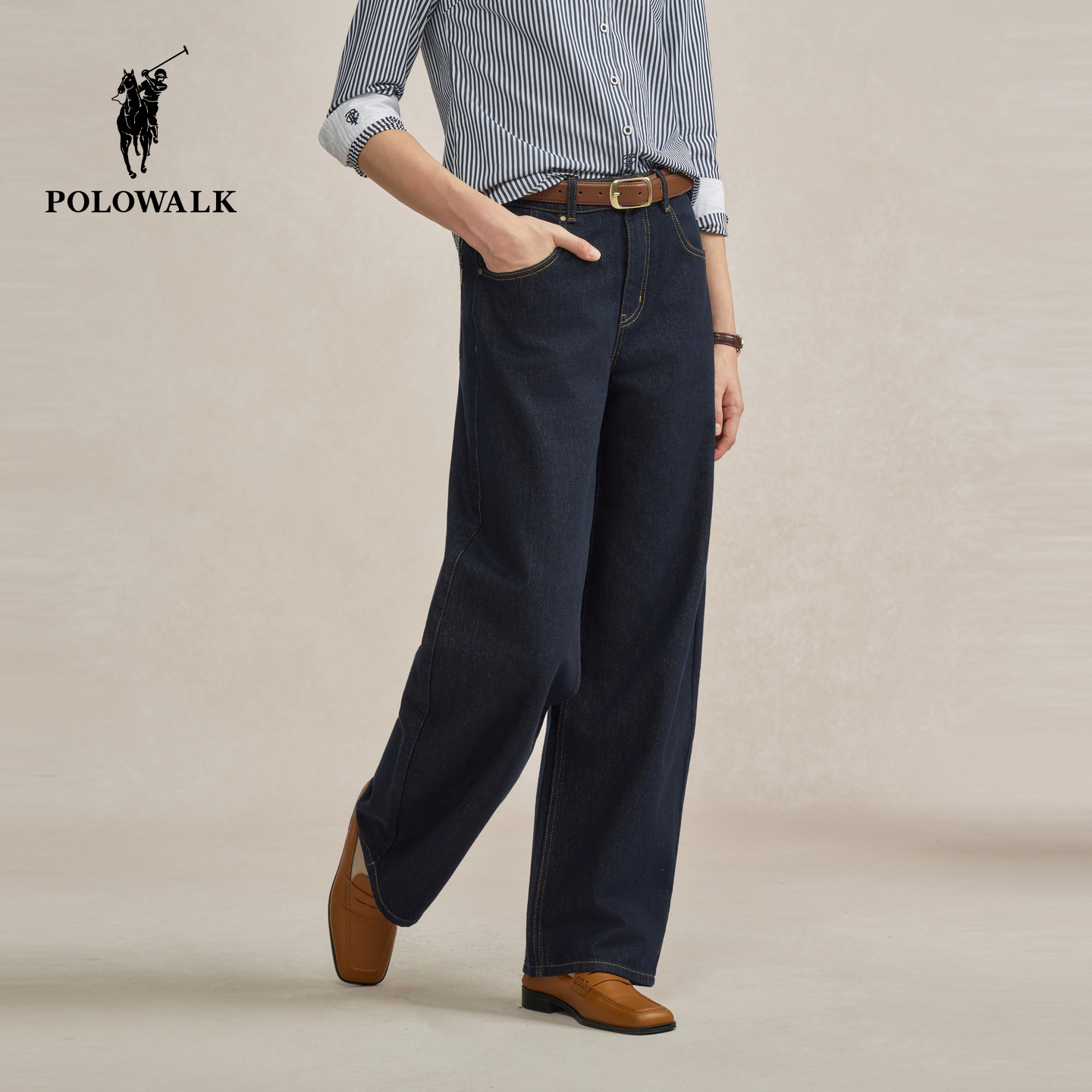 POLOWALK女式牛仔裤2026春季新品时尚百搭通勤直筒显瘦阔腿弯刀裤