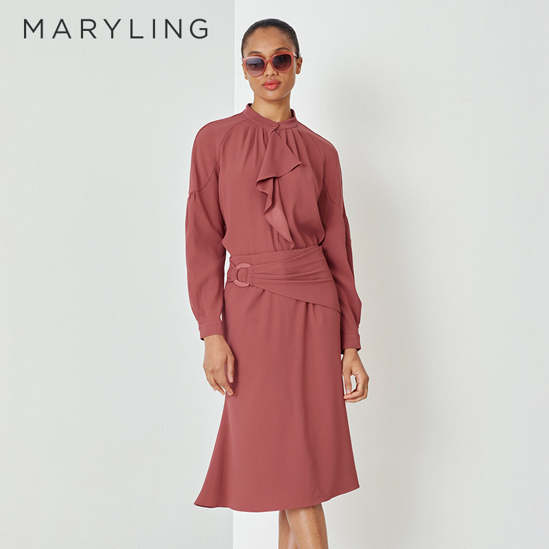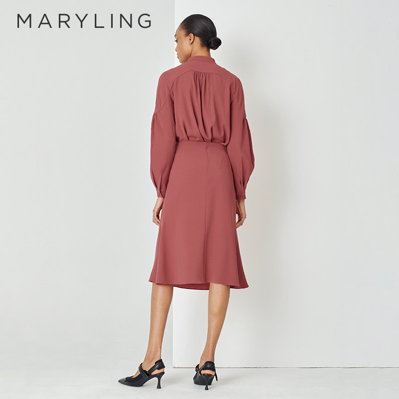 MARYLING玛俪琳春秋新品砖红收腰鱼尾包臀半身裙A1DBW72220