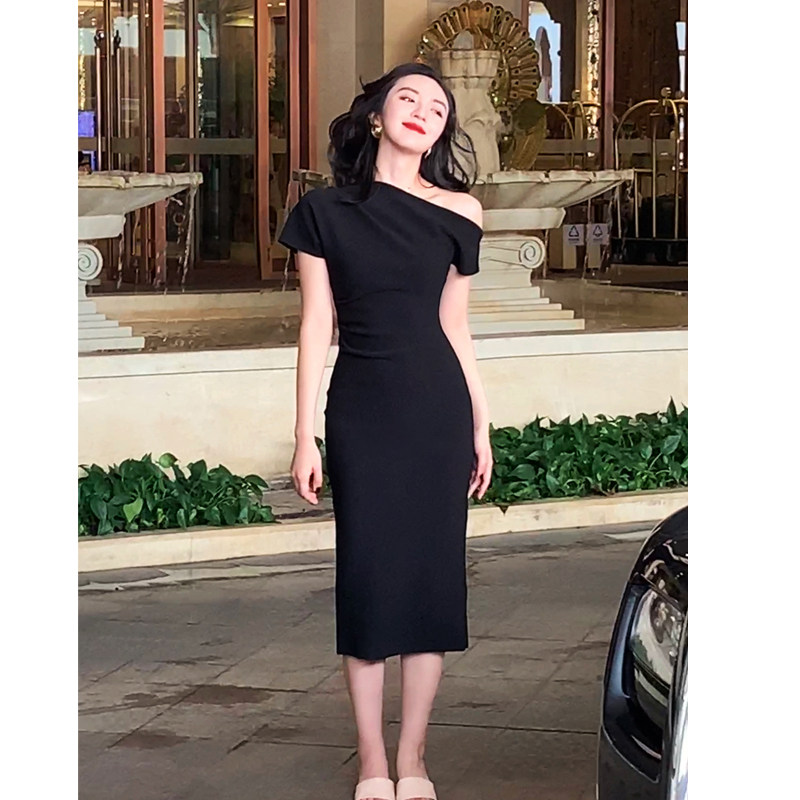 juju定制复古女装设计感礼服裙高级感显瘦露肩包臀连衣裙法式气质