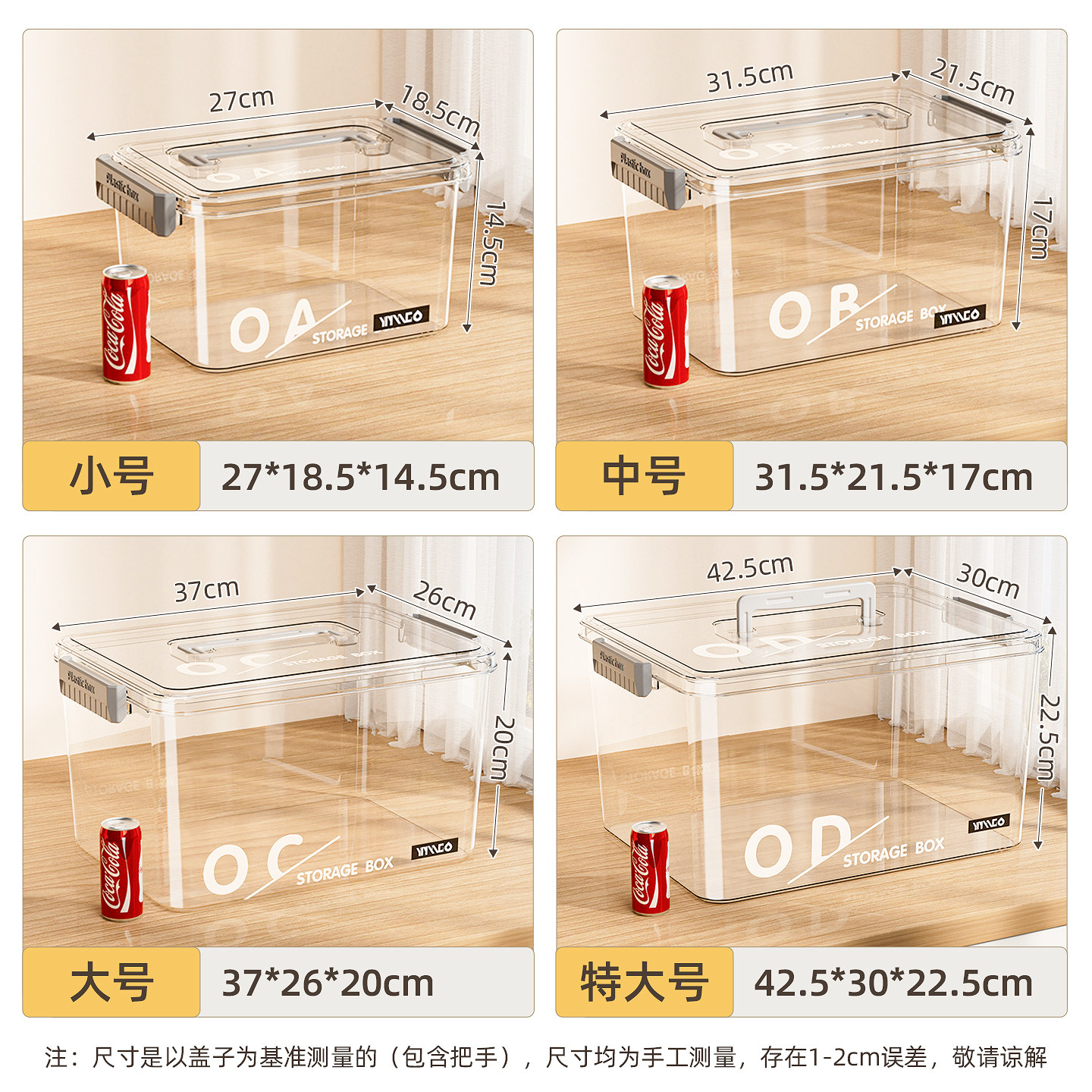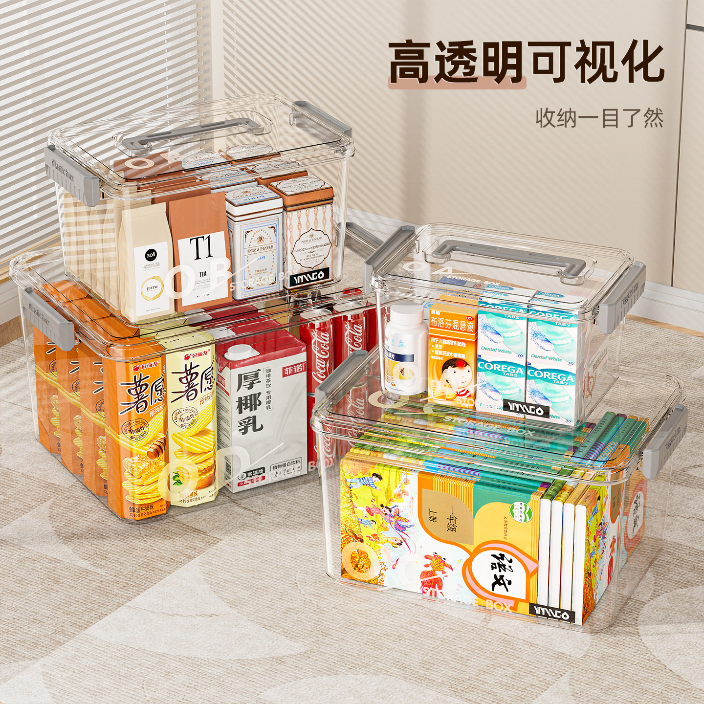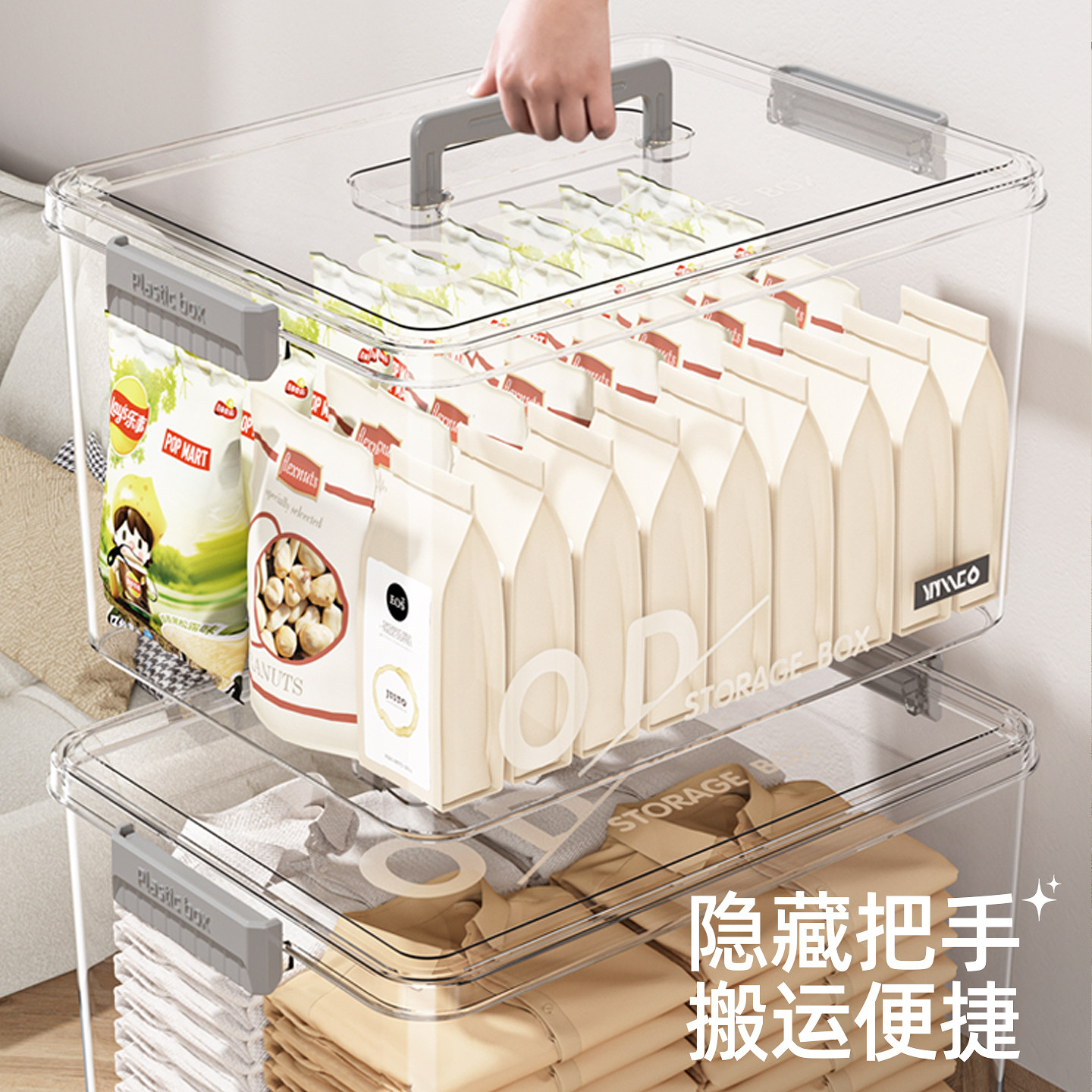 透明收纳箱手提衣服玩具零食书本带盖大容量周转整理盒塑料储物筐