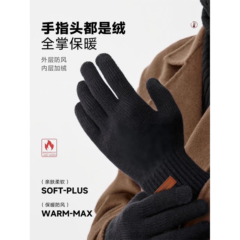 骆驼手套冬季男士户外跑步运动防寒薄绒保暖女可触屏防滑骑行手套