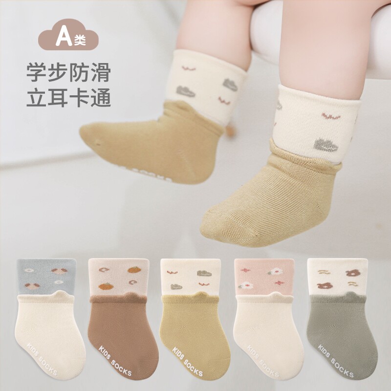 新生婴儿袜子春秋纯棉0-3月6儿童宝宝秋冬季中筒袜无骨防滑地板袜