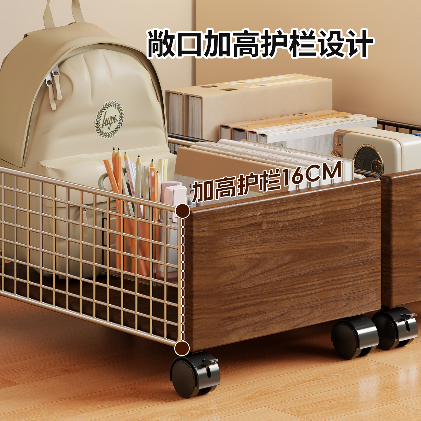 麻将收纳箱家庭书架箱办公室小推车置物架可移动书包放置神器滑轮