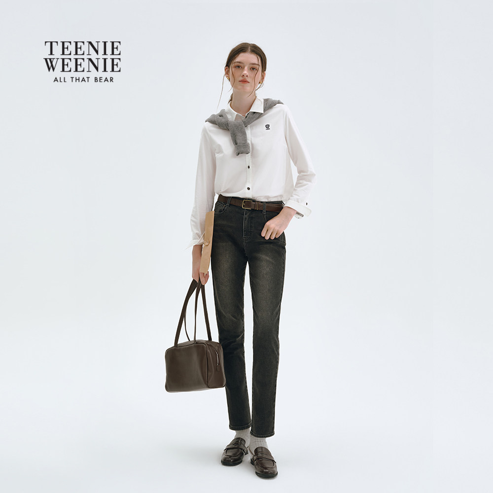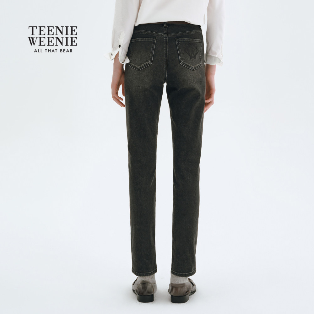 TeenieWeenie小熊女装牛仔裤秋冬季简约日常舒适修身小脚裤长裤