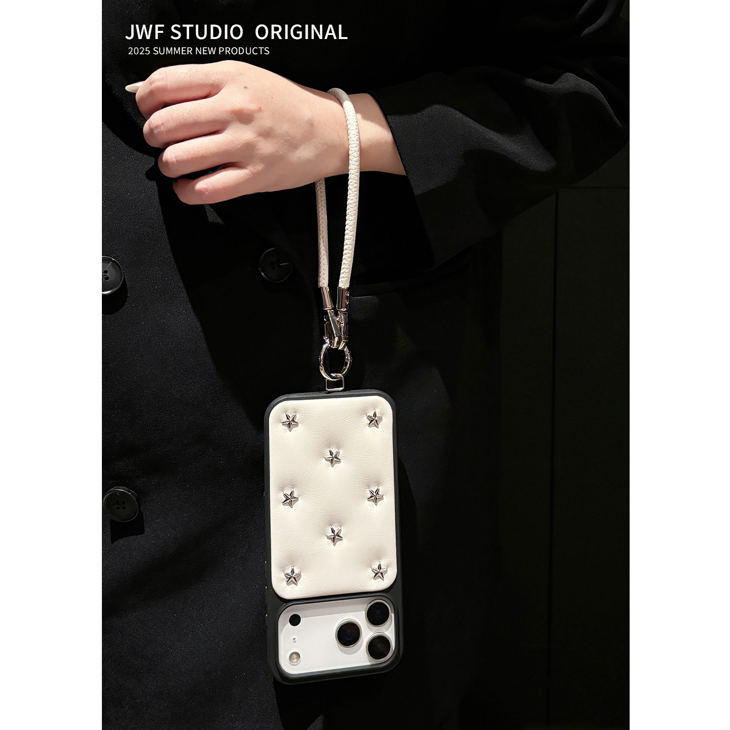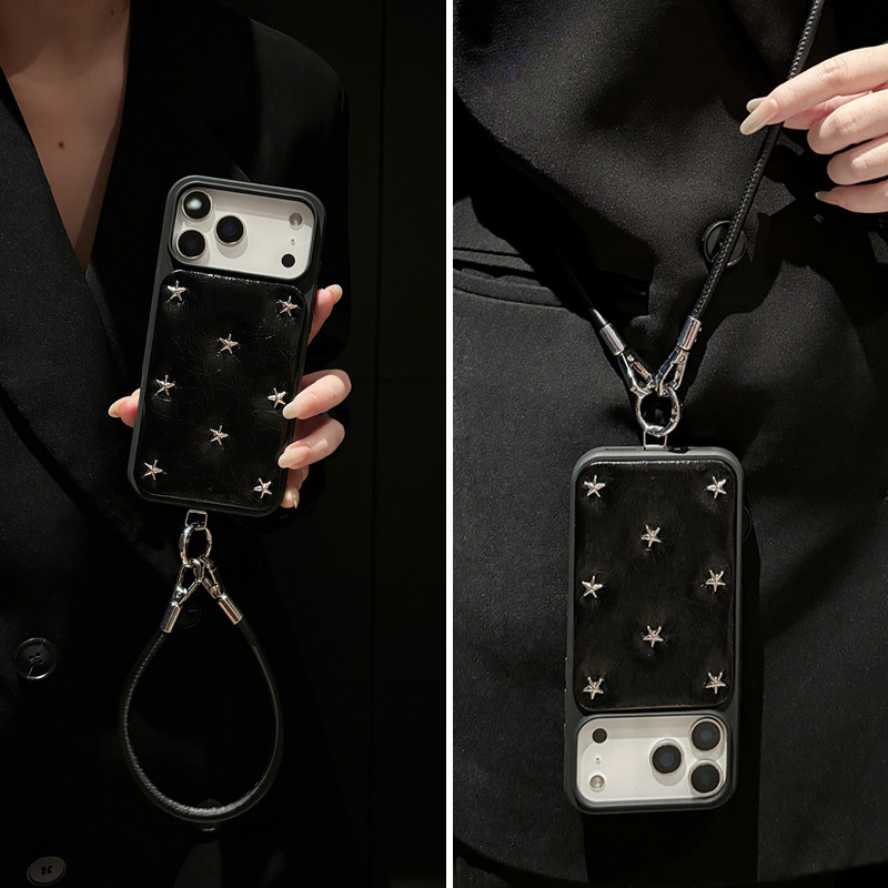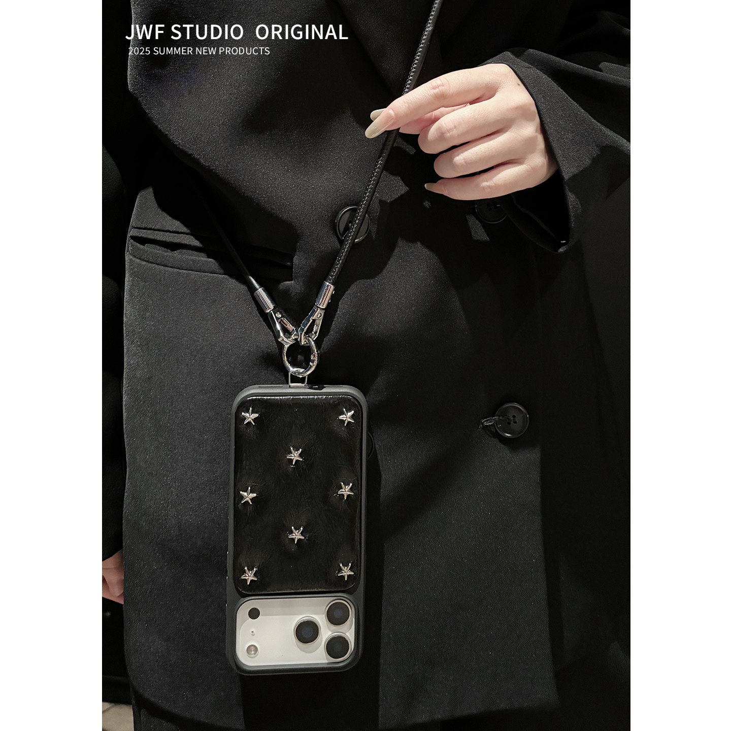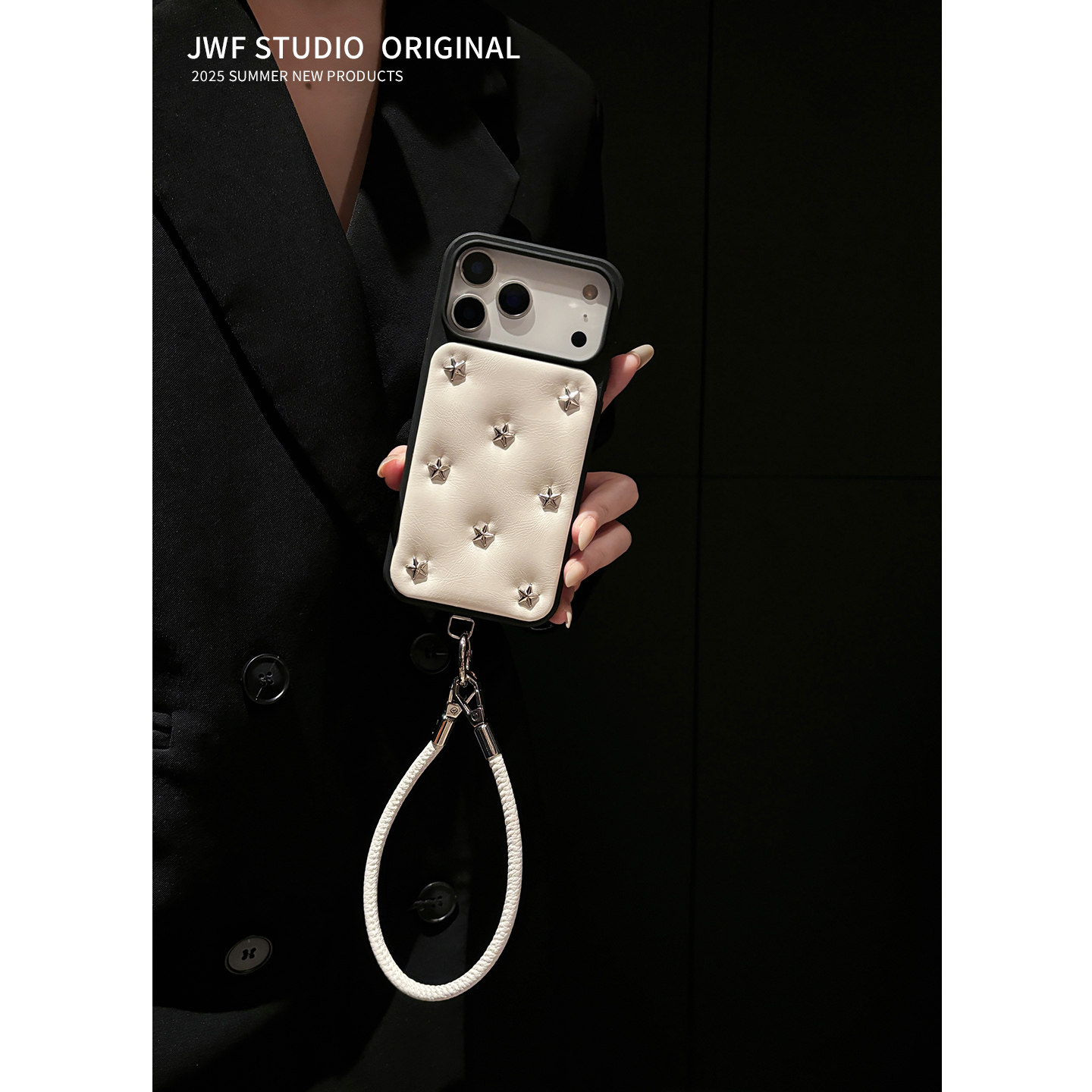ins秋冬时髦甜酷皮质铆钉星星ins韩17promax斜挎适用16pro油蜡感14苹果16ProMax手机壳iPhone15pro女13保护套