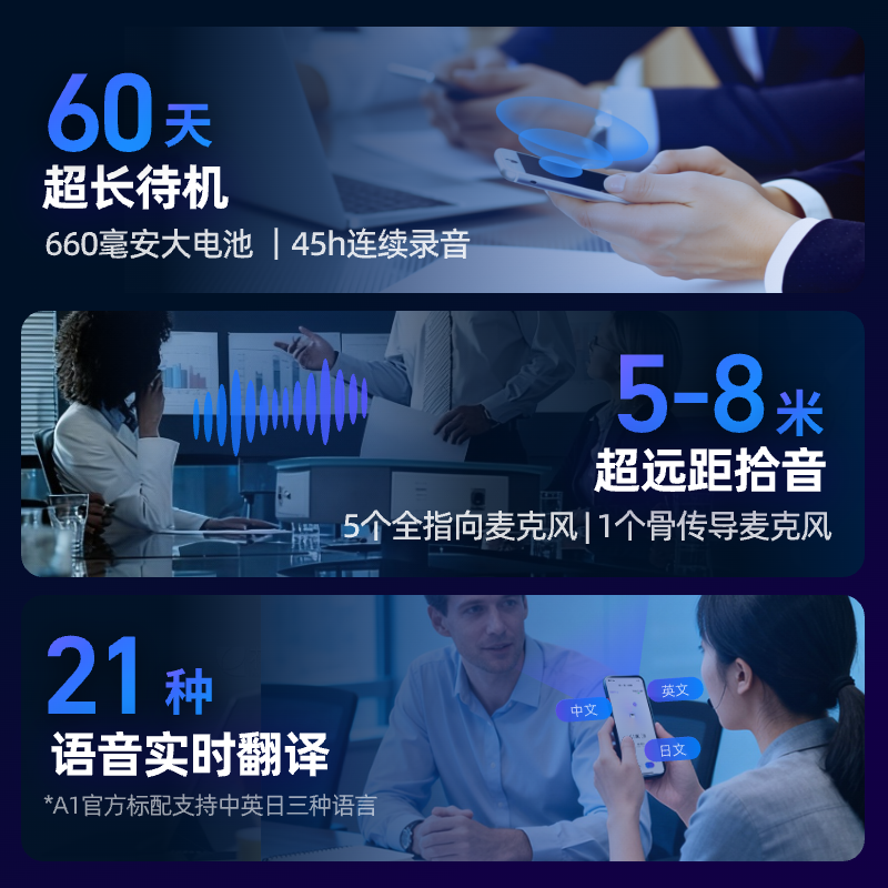 钉钉A1 DingTalk a1 钉钉录音笔智能AI录音卡片会议记录转写翻译