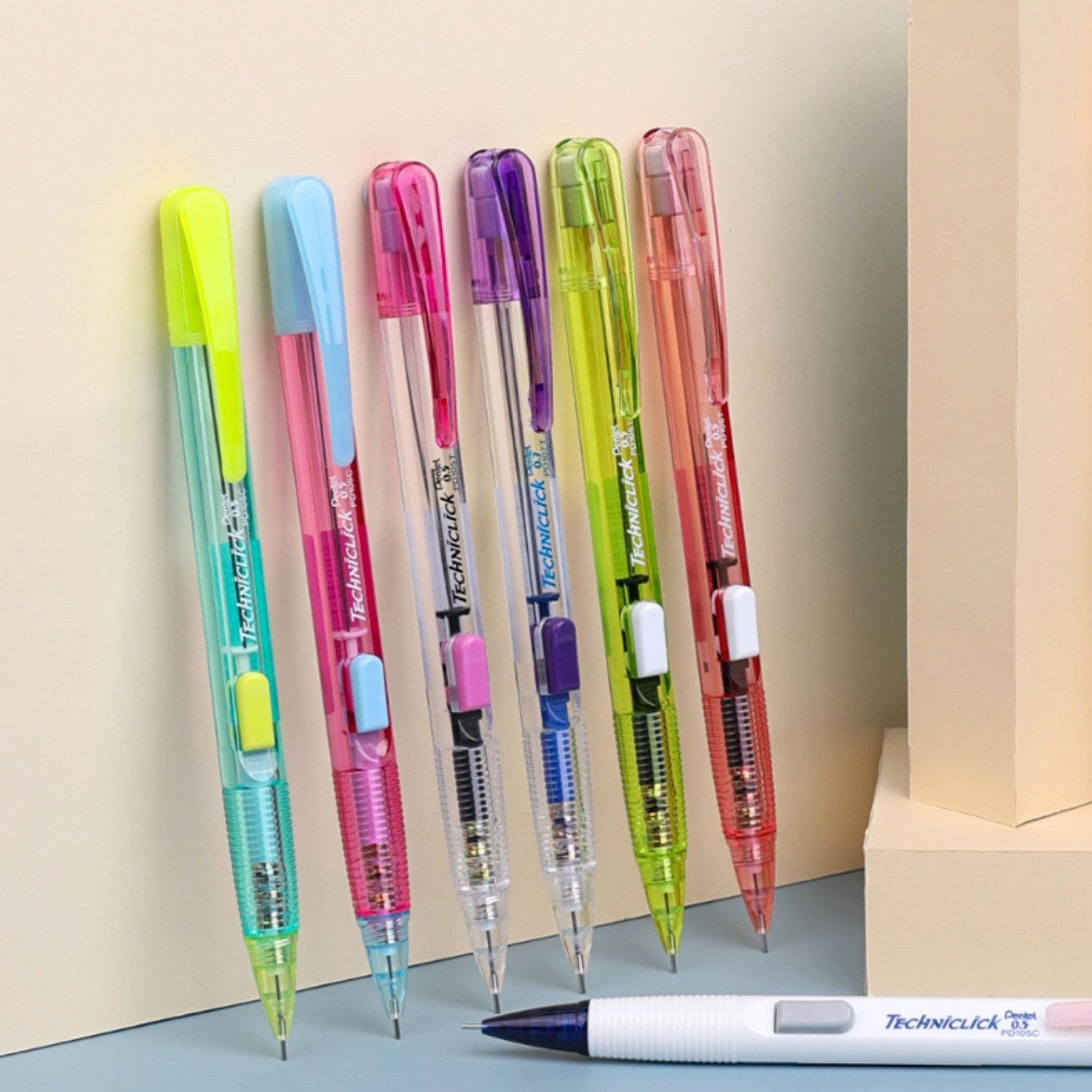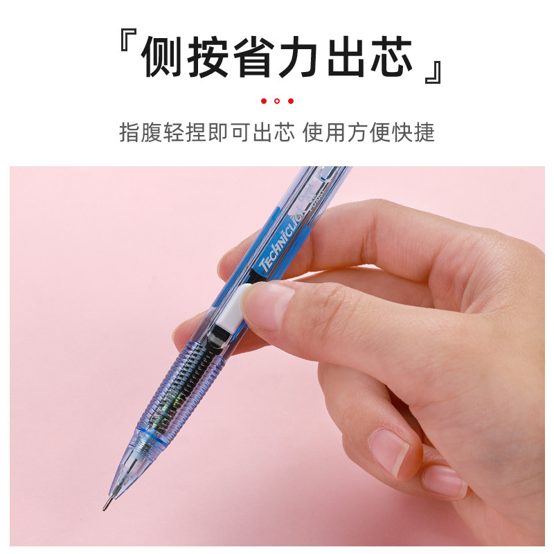 日本Pentel派通TECHNiCLiCK经典侧按透明糖果色学生自动铅笔PD105