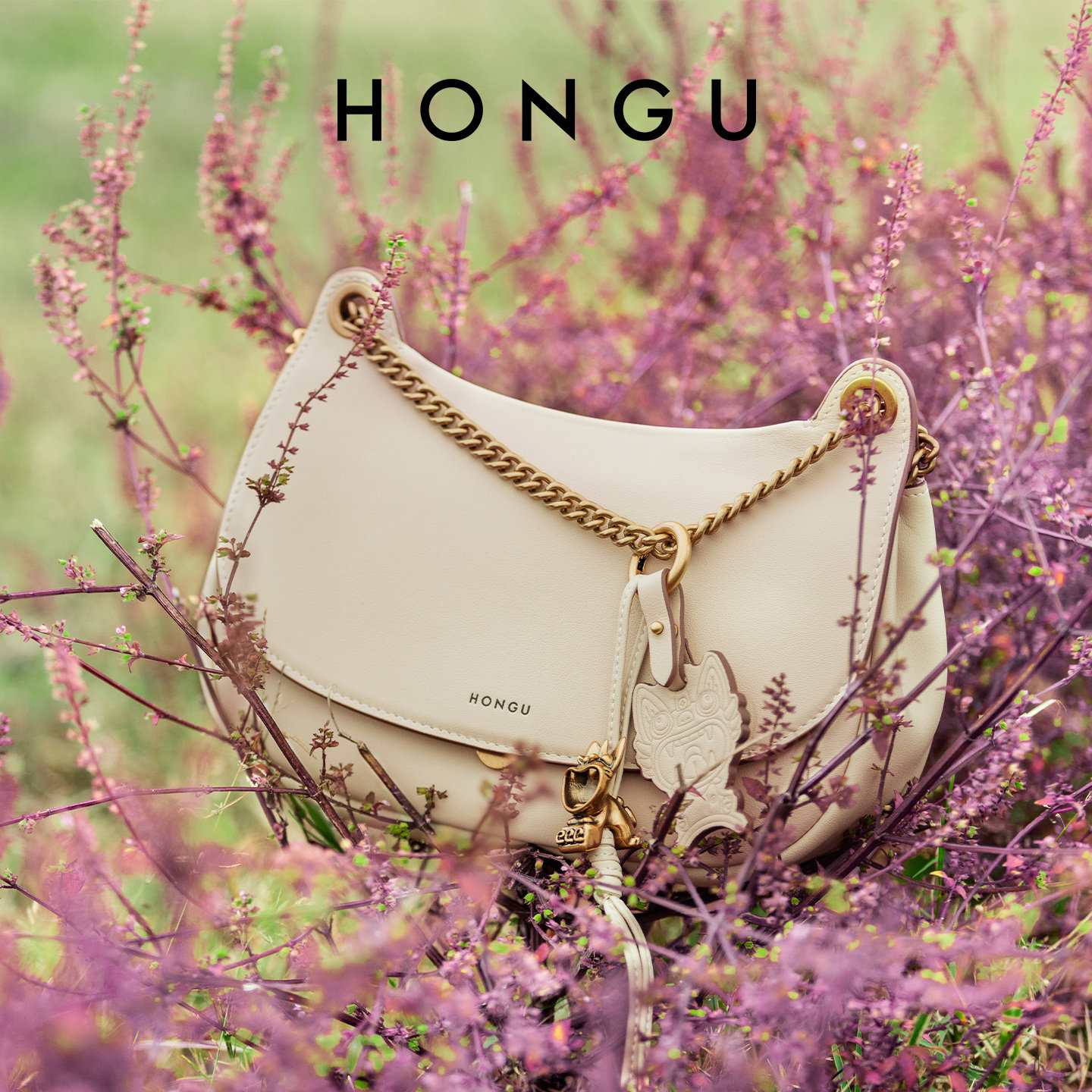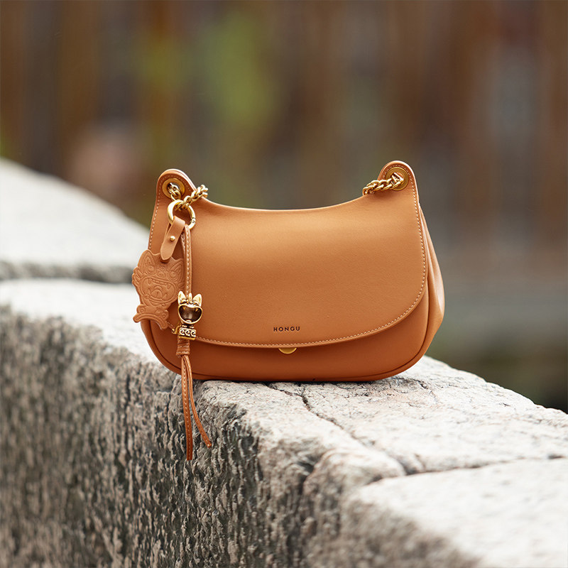 红谷包包女式2026新款真皮链条单肩斜挎包时尚高级感猫耳包女士包