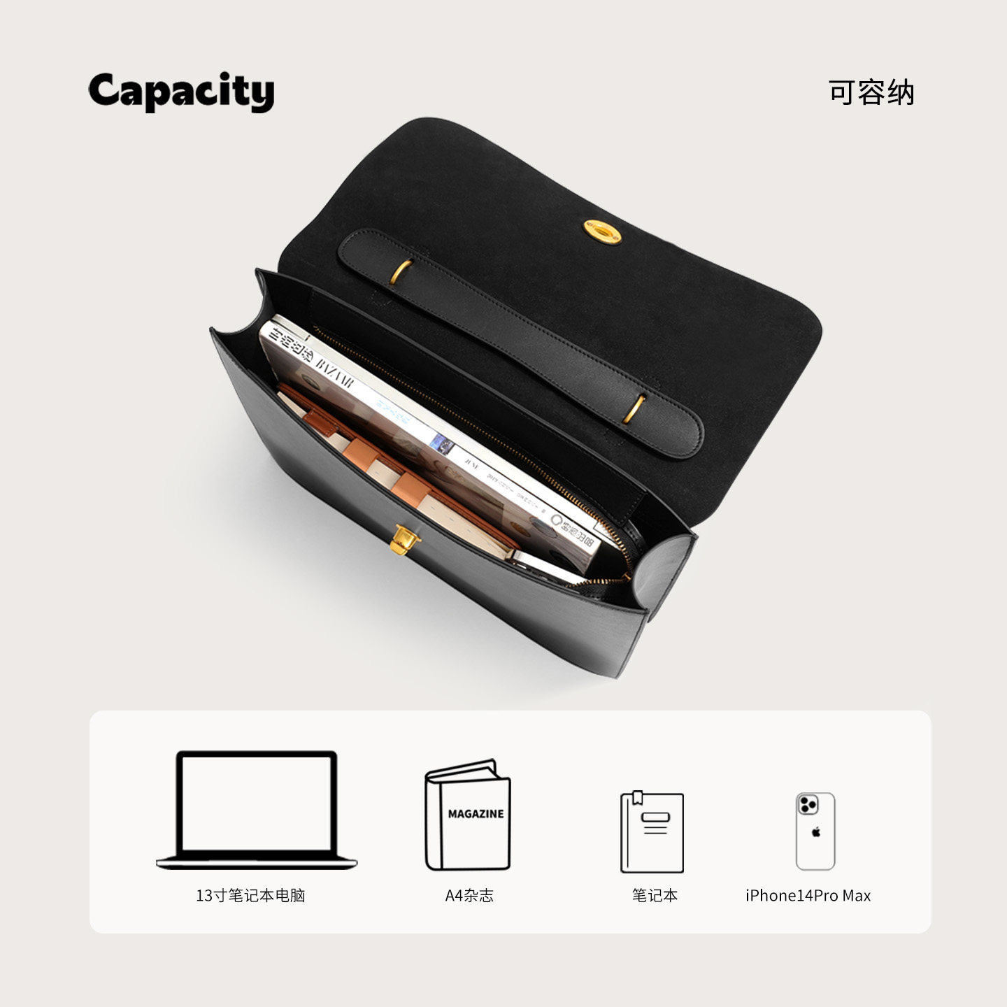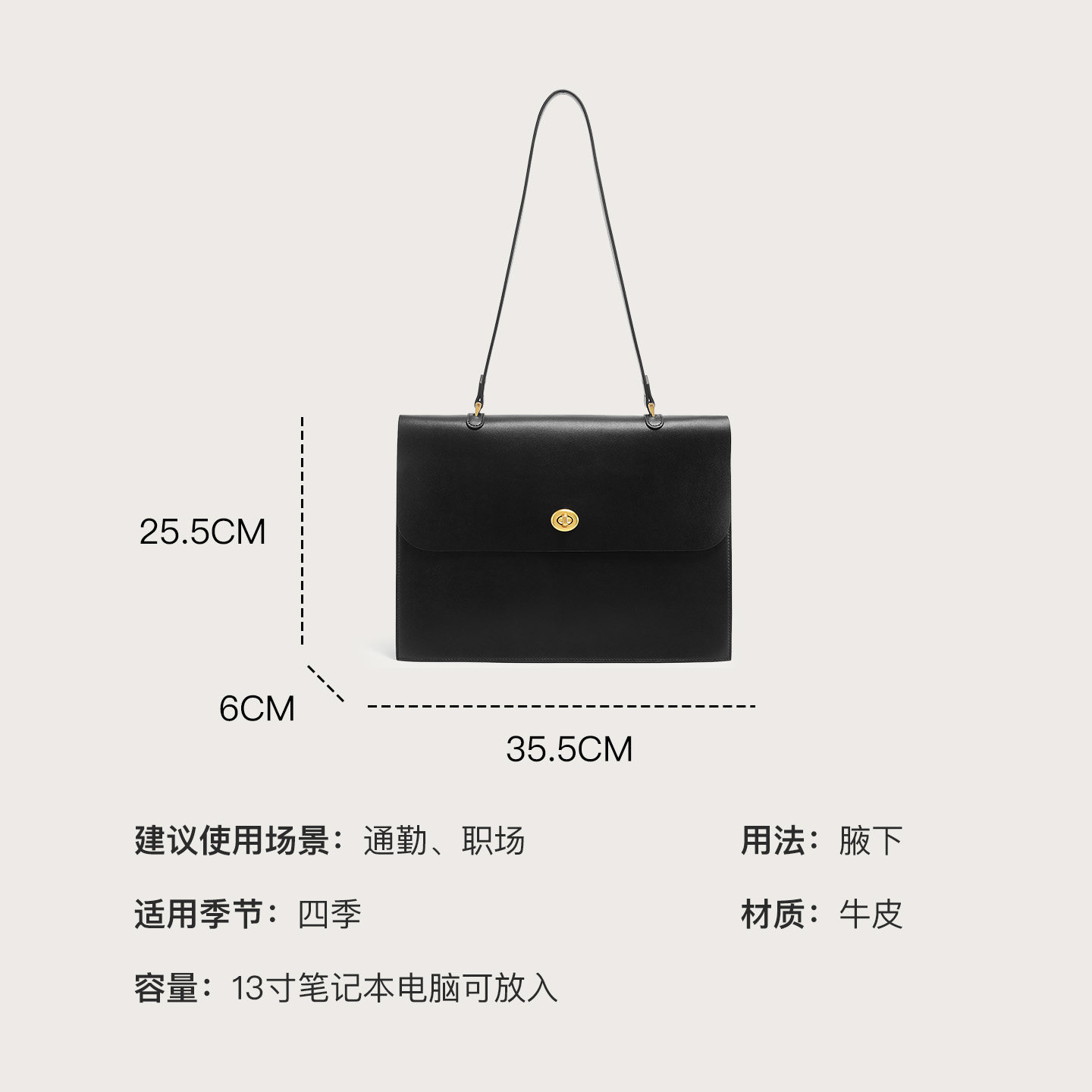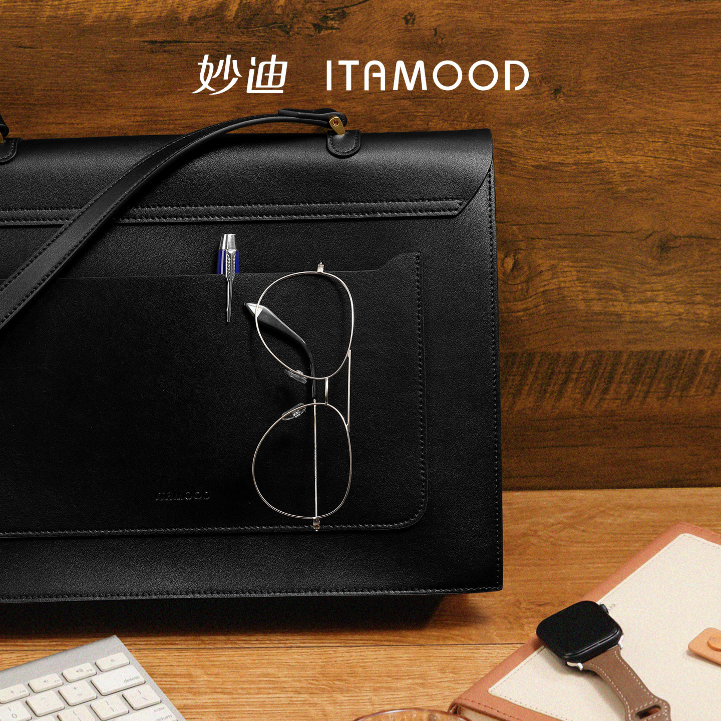 妙迪商务通勤电脑包轻奢高级感职场真皮知识分子公文包单肩包包女