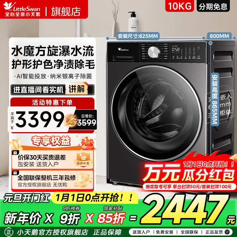 小天鹅小乌梅3.0轻享版小钢炮10kg全自动滚筒洗烘一体洗衣机VE10P