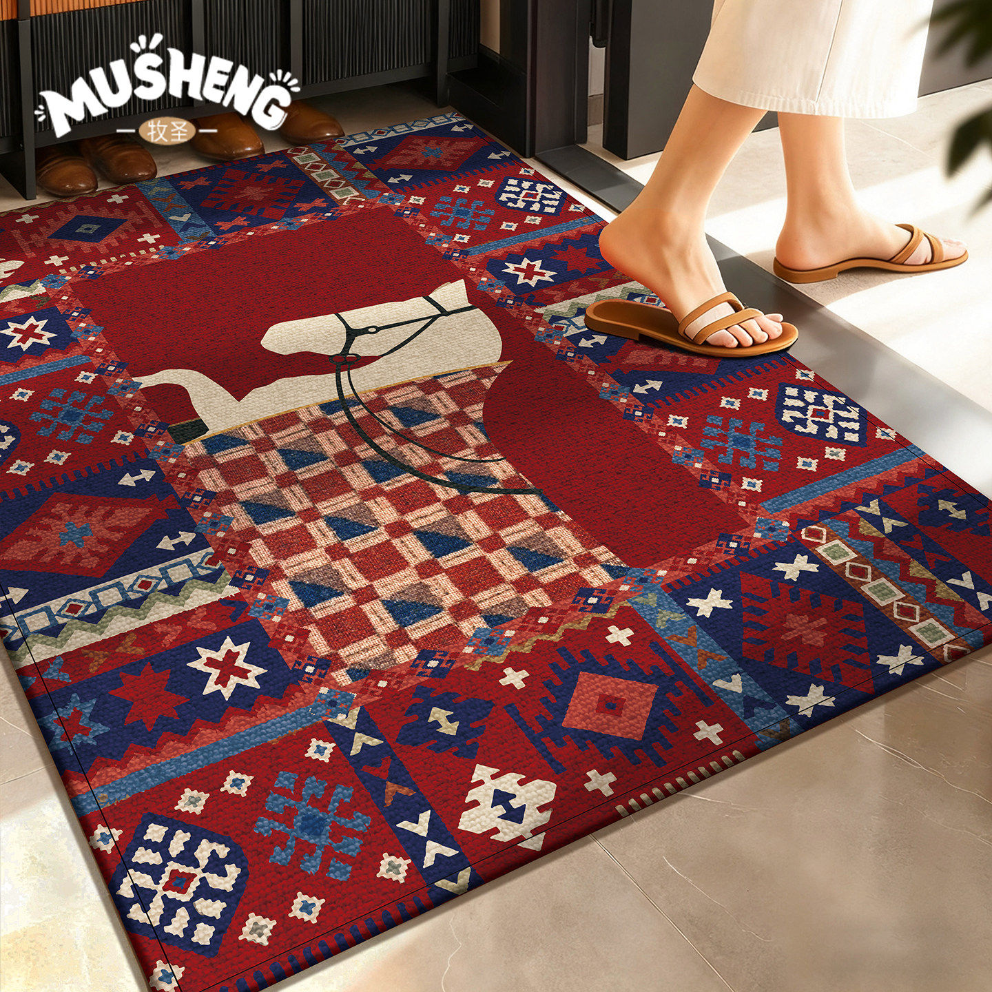 红色马年地垫入户门垫喜庆中式进门高级感大门口脚垫别墅新款垫子