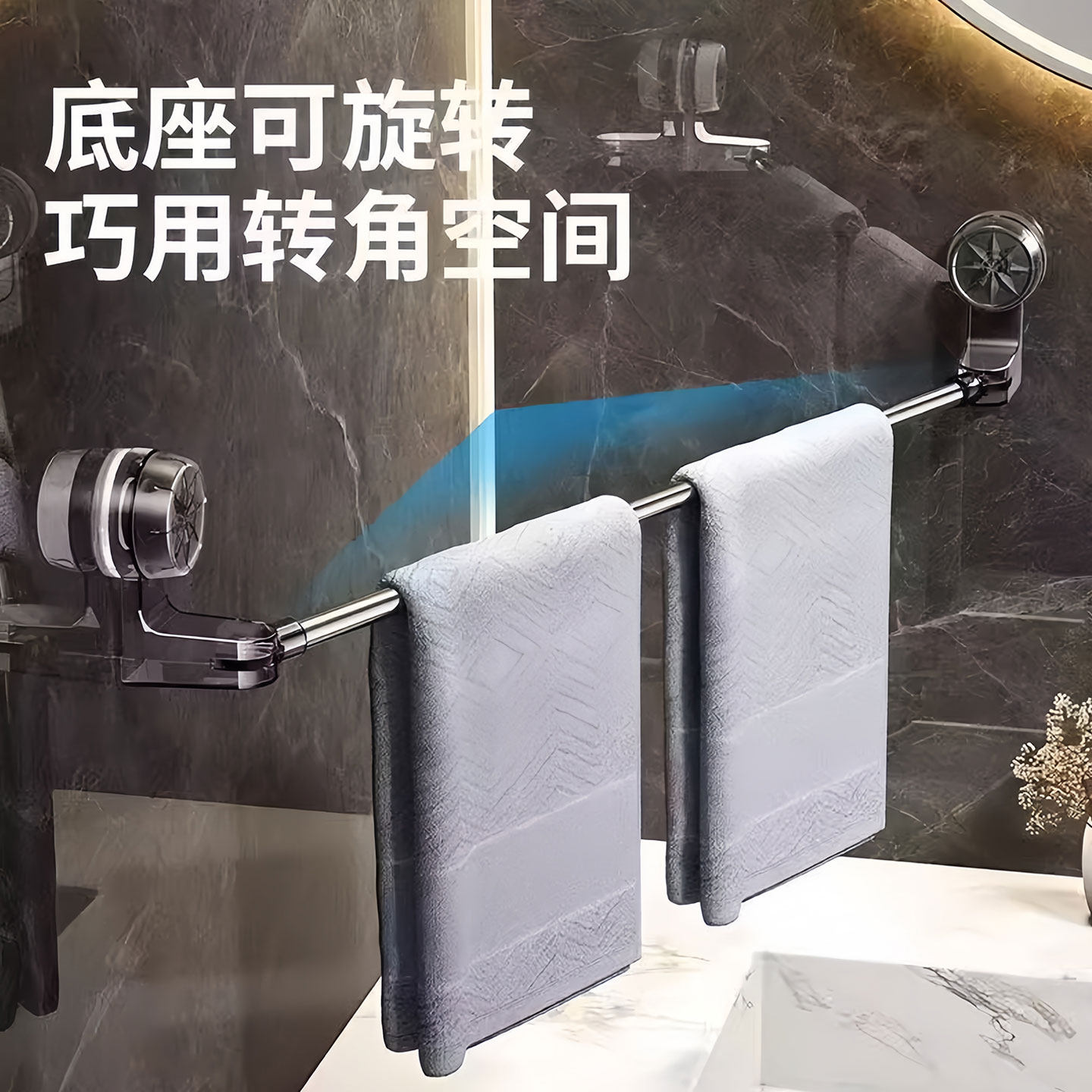 吸盘旋转抹布架免打孔毛巾架多杆壁挂沥水架置物架挂架吸盘式挂杆