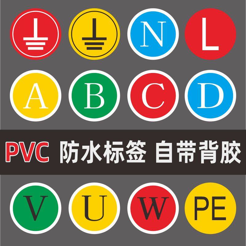 接地标识贴纸电力地线标签贴电源线电工电气三相配电箱柜相位火线零线NLABCDVUPE设备安全标示牌防水