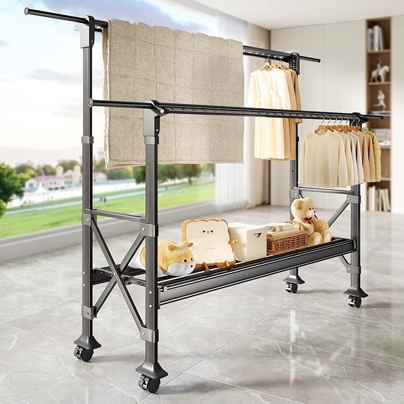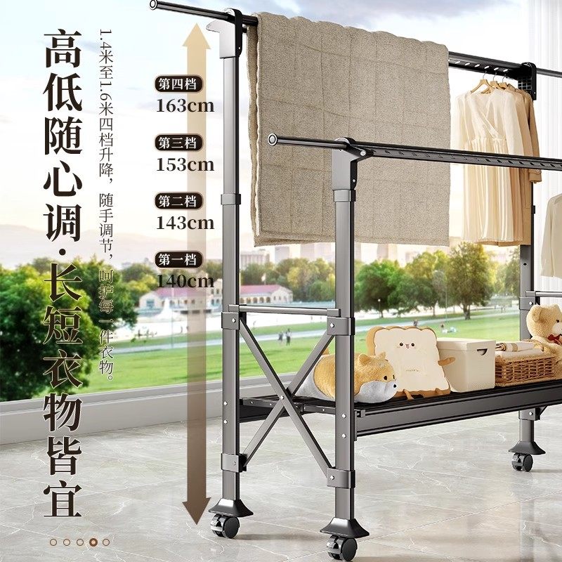 晾衣架落地家用卧室挂衣架宿舍室内双杆双层晒衣服架子简易凉衣杆