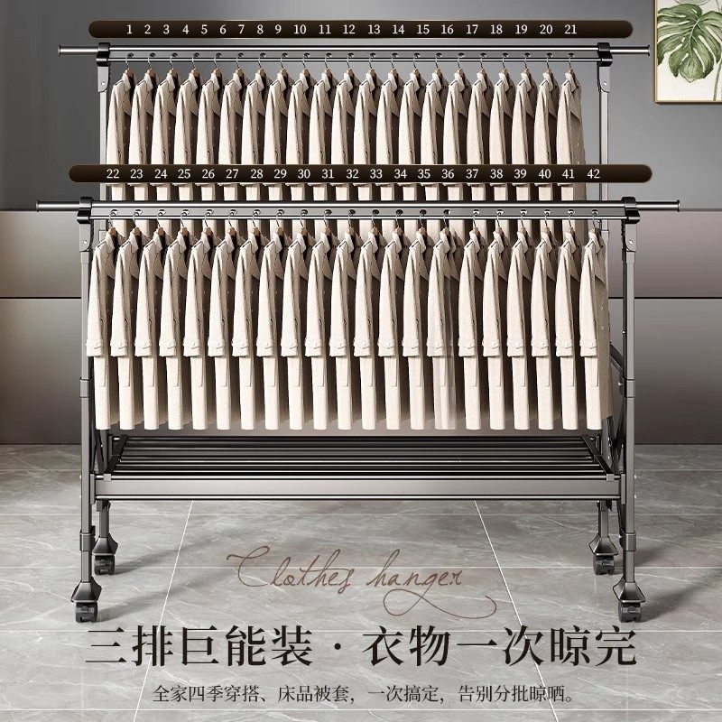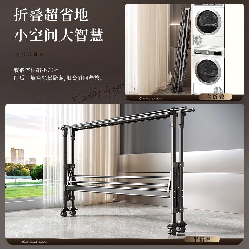 落地晾衣架折叠不锈钢家用阳台室内室外伸缩凉衣杆室内晒被子神器