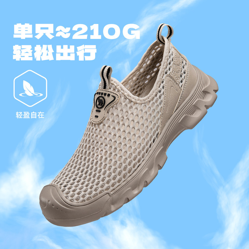 骆驼男鞋2026夏季新款轻盈透气免系舒适休闲网鞋