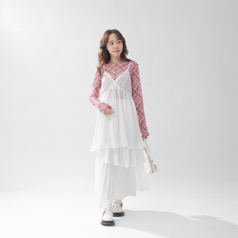 QUEENSHOP 2025秋冬新品女装V领缇花透肤细肩罩衫背心01099121