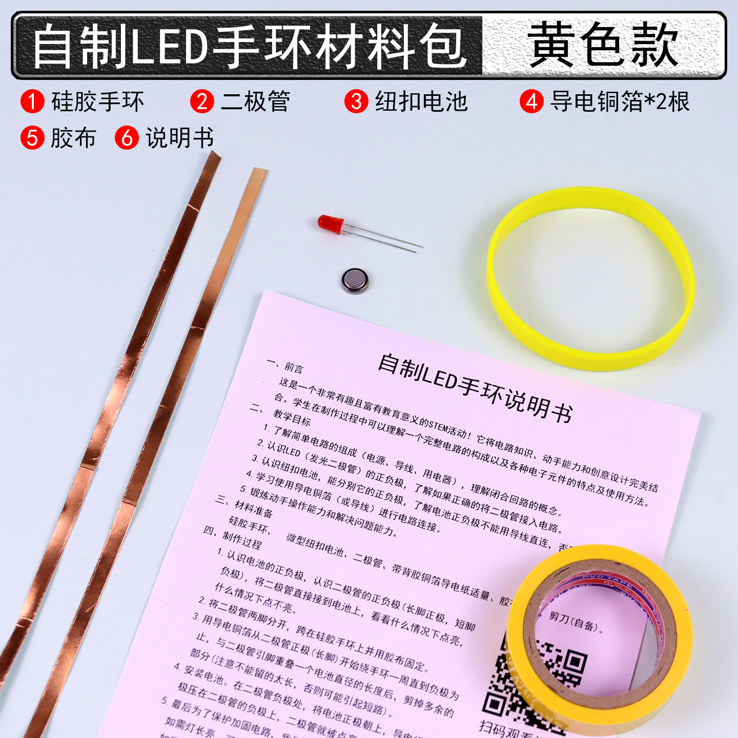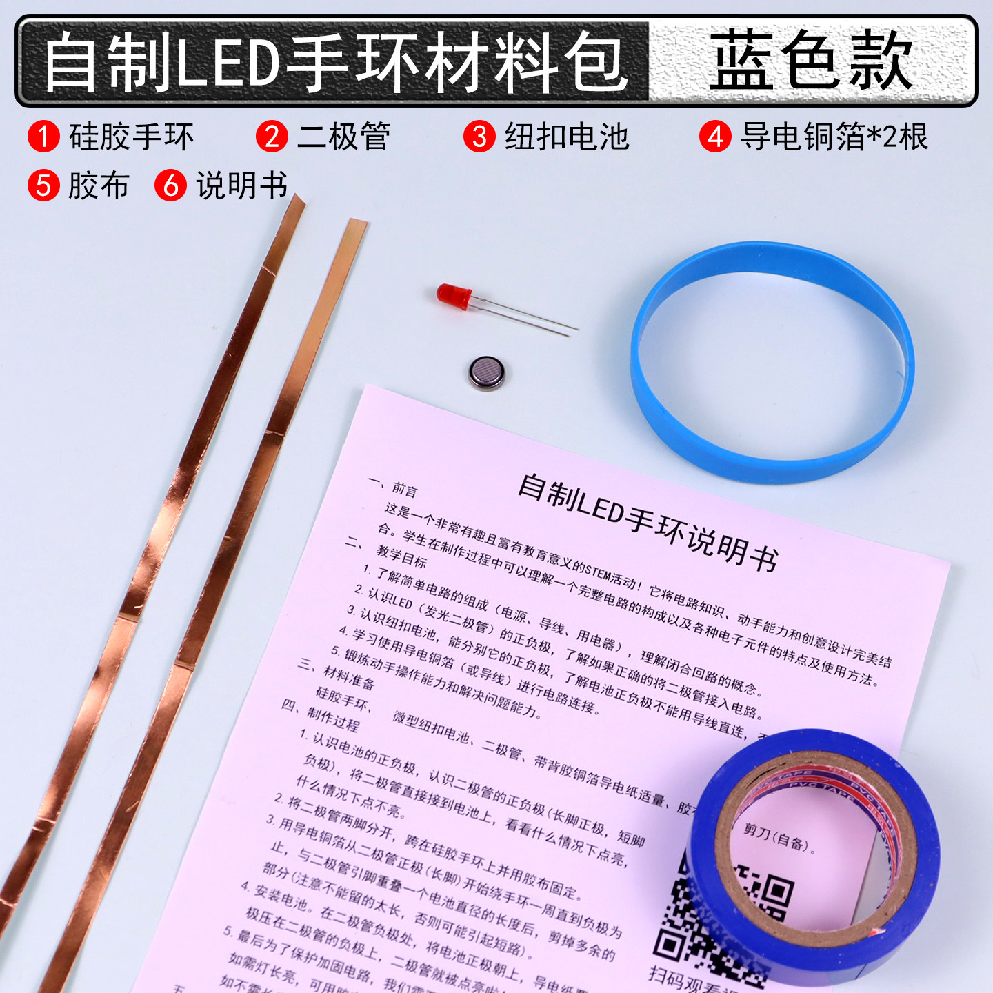 四年级新材料自制LED手环材料包学生用科技小制作暗光发光硅胶手环手链手镯儿童小学科学发光二极管纽扣电池