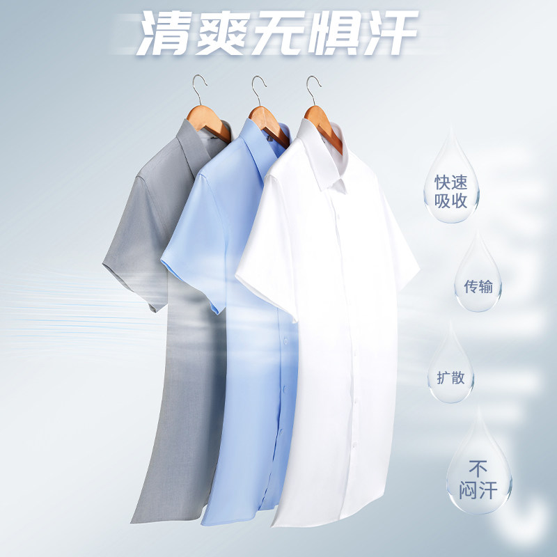 杉杉官方短袖衬衫男纯棉免烫2025夏季新款休闲商务正装白色衬衣男