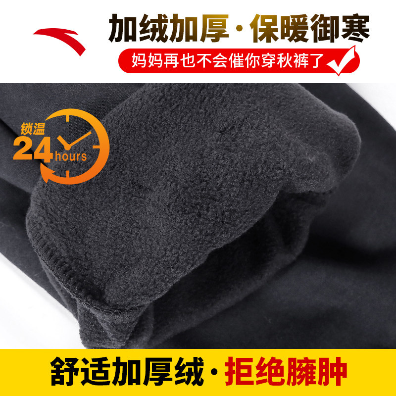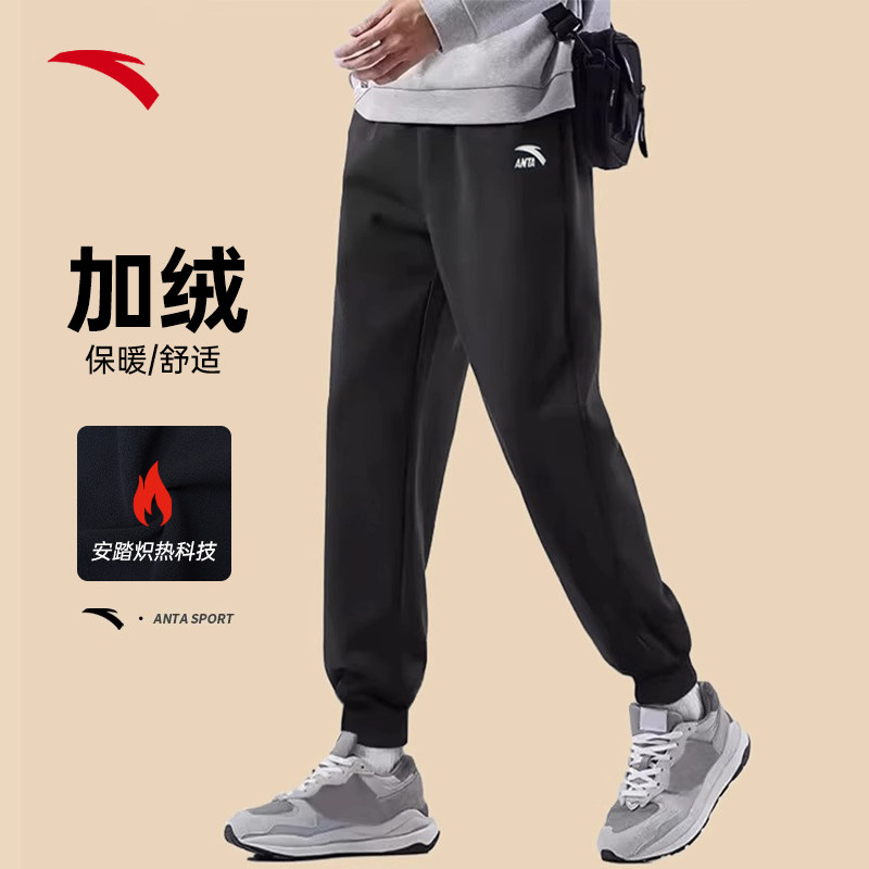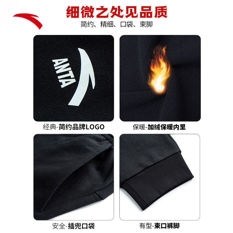 安踏加绒运动裤男士长裤2026秋冬季针织加厚裤子保暖黑色休闲裤