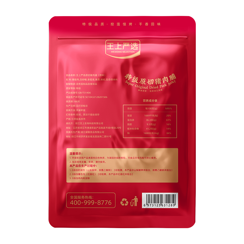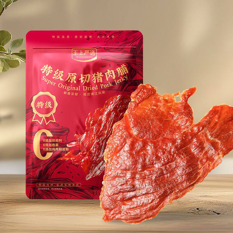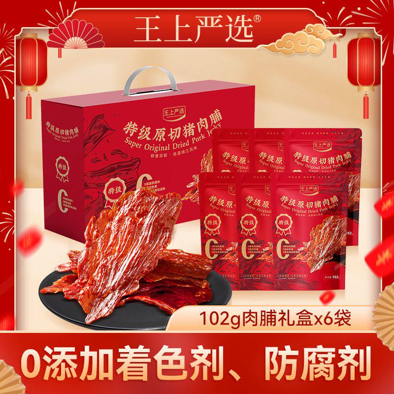王上严选原切大片猪肉脯干靖江特产猪肉铺小吃零食102g送礼盒袋装