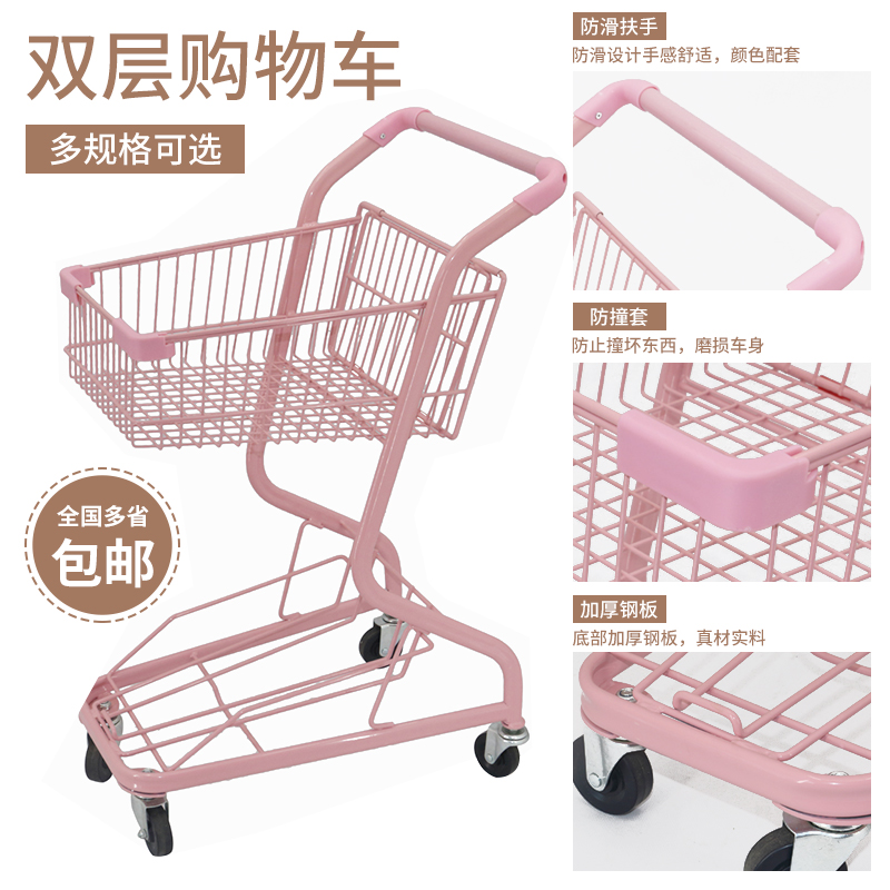 网红摆地摊拍照粉色少女心便利店购物车KTV日式双层手推车置物车