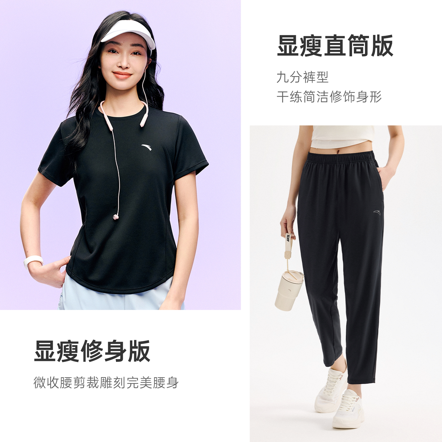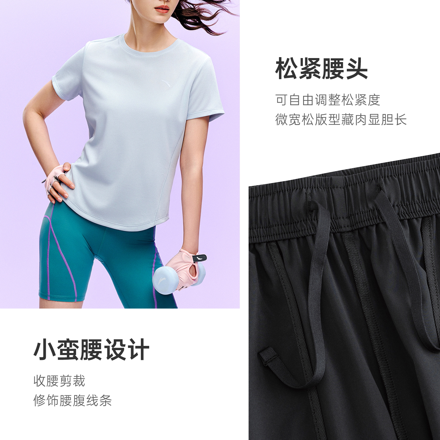 安踏速干套装女跑步运动夏季女士宽松短袖t恤短裤体育中考两件套