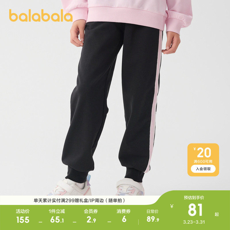 巴拉巴拉童装女童裤子儿童2026休闲春秋装中大童长裤撞色潮运动裤