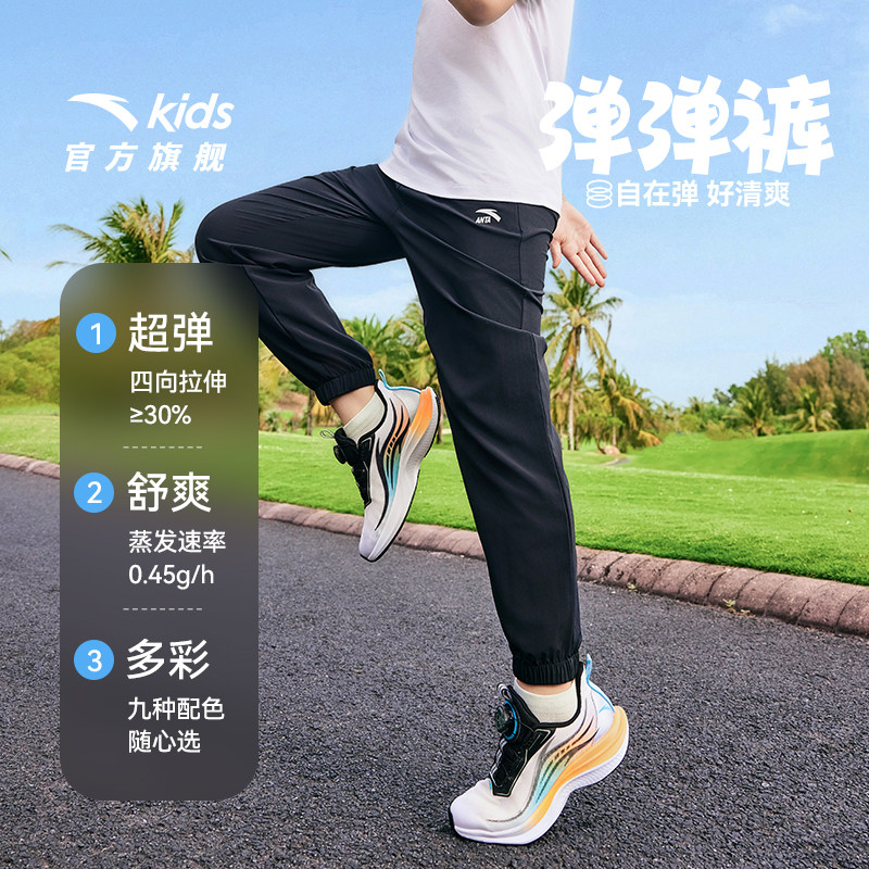 安踏儿童裤子男童运动长裤2026新款春夏季中大童防蚊裤梭织针织裤