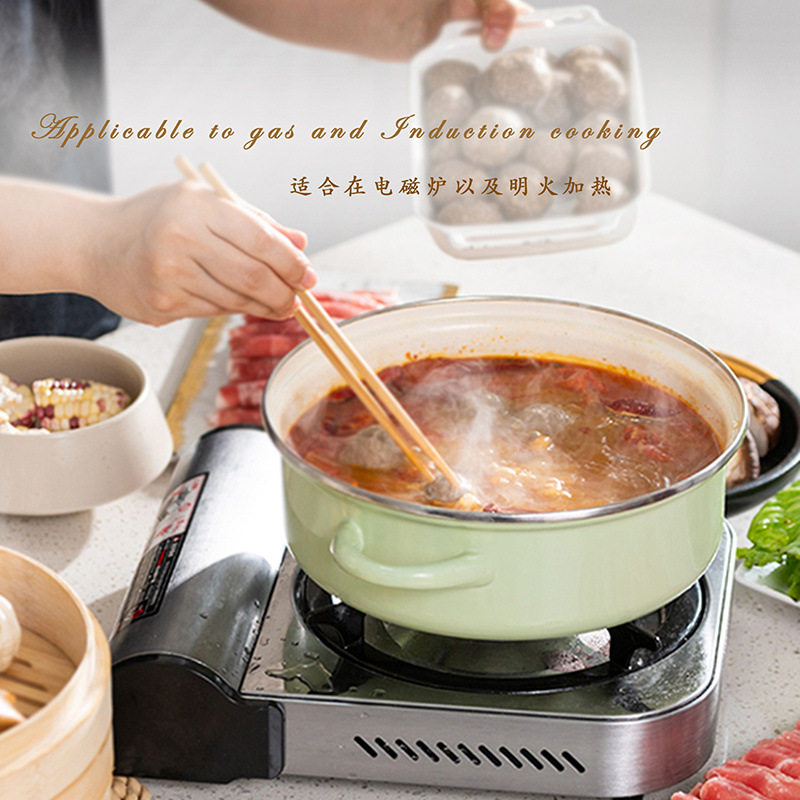 搪瓷桌上火锅双耳汤锅日式加厚炖锅可加蒸笼蒸锅电磁炉燃气通用