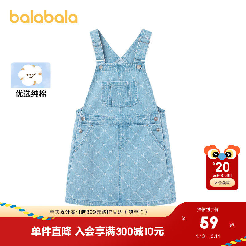 巴拉巴拉童装儿童背带裙女童春秋装洋气中大童牛仔连衣裙甜休闲甜