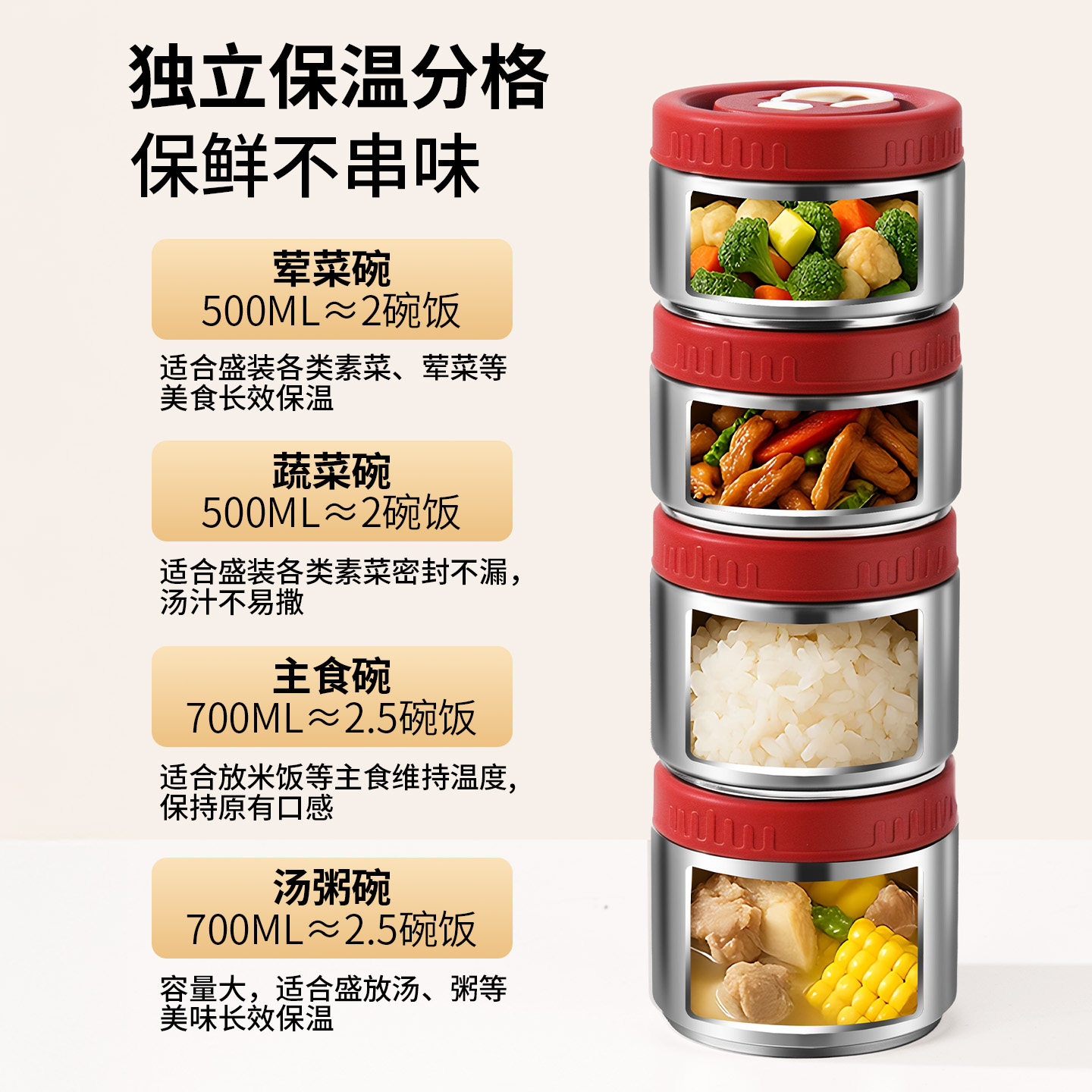 多层超长保温饭盒碗可微波炉加热便携饭桶上班族不锈钢便当盒餐盒