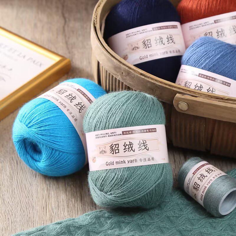精纺貂绒毛线 手编机织24s/3中粗 DIY编织毛衣围巾线细毛线批发